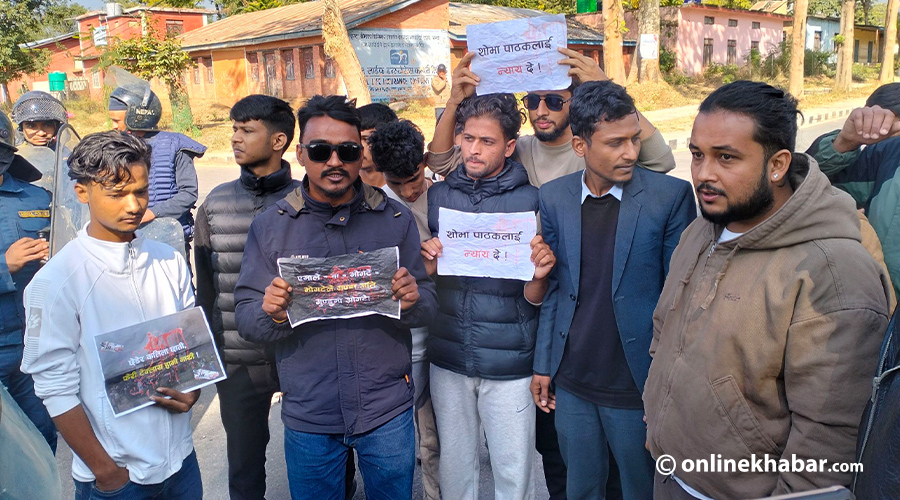 ९ मंसिर, सुर्खेत । सुर्खेतको वीरेन्द्रनगरमा नेकपा एमालेका नेता महेश बस्नेतविरुद्ध युवाहरूले प्रदर्शन गरेका छन् ।