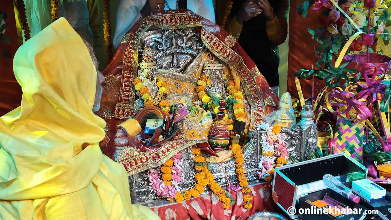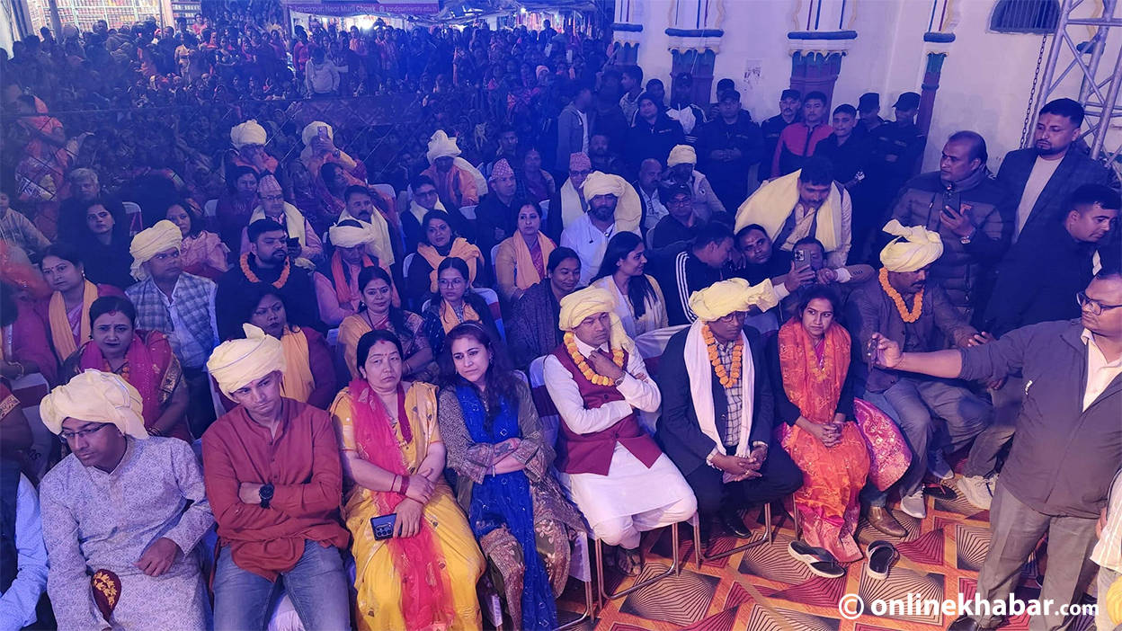 ९ मंसिर, जनकपुरधाम। जानकी मन्दिर प्राङ्गणमा राम र जानकीको वैवाहिक कार्यक्रम सुरु भएको छ । मिथिला परम्परा अनुसार वैवाहिक कार्यक्रम रातभर चल्नेछ।