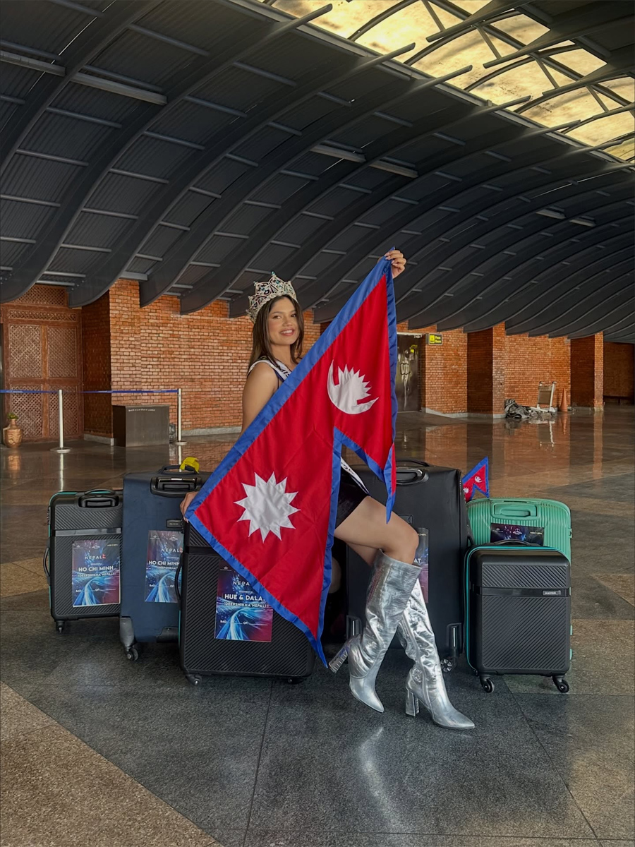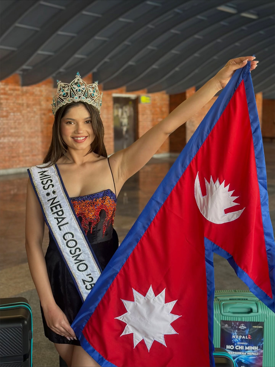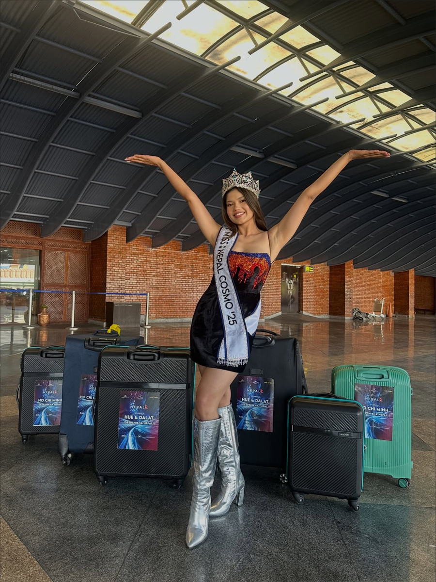Generated by OK AI. Editorially reviewed.- मिस नेपाल कोस्मो दीपशिखा नेपाल बुधबार बिहान सौन्दर्य प्रतियोगिता 'मिस कोस्मो २०२५' मा सहभागी हुन प्रस्थान गरेकी छन्।