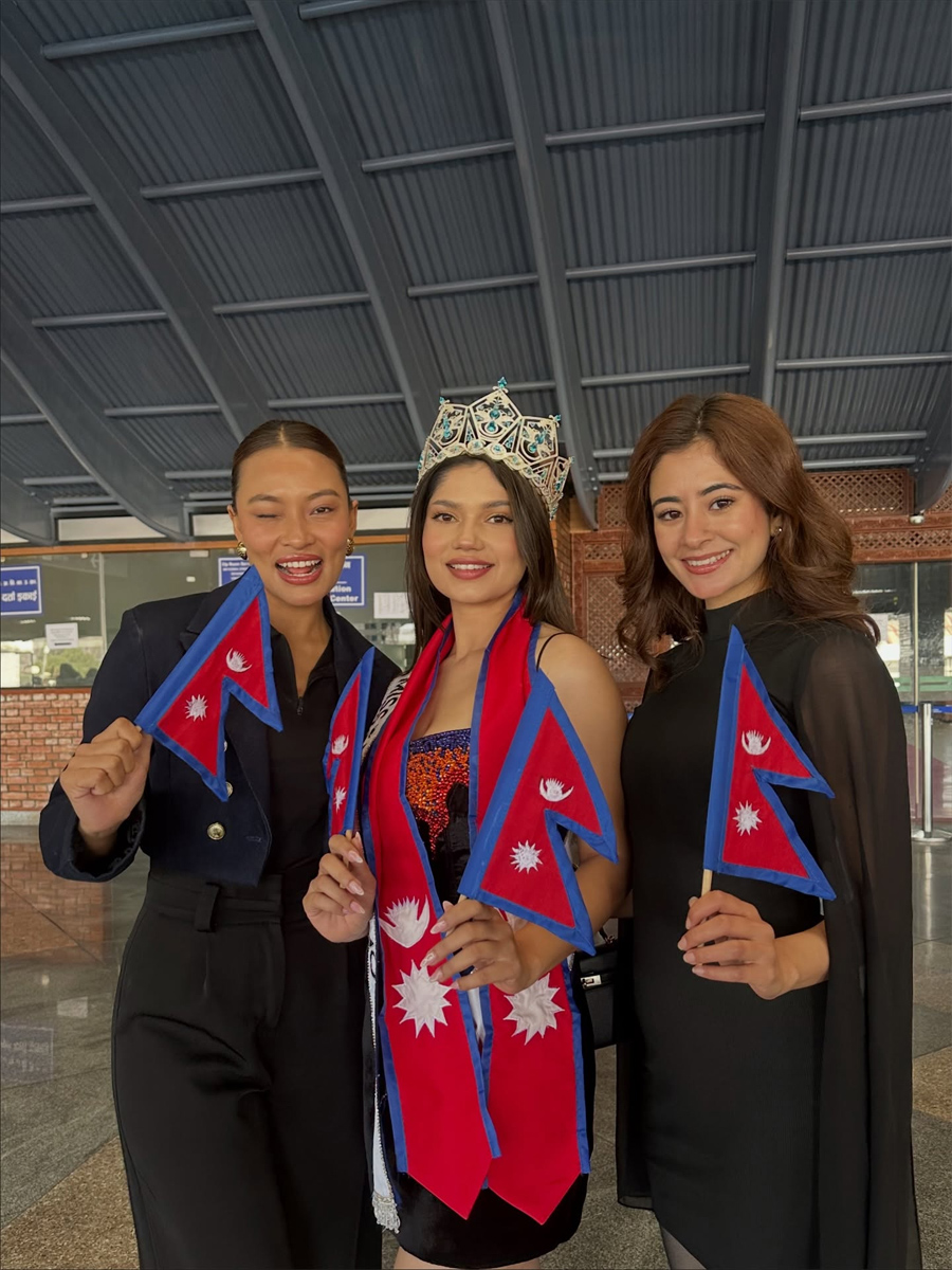 - मिस नेपाल वर्ल्ड लुना लुइँटेल, मिस नेपाल अर्थ सोनी घले र द हिडन ट्रेजरका अध्यक्ष अजय स्थापितले दीपशिखालाई त्रिभुवन अन्तर्राष्ट्रिय विमानस्थलमा शुभकामना दिए।