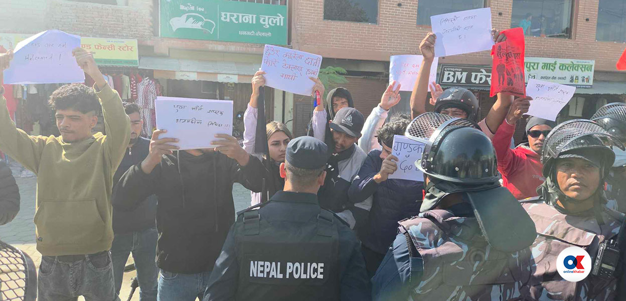 जेनजी युवाहरूले बुधबार बिहान धनगढी बजारमा प्लाकार्ड लिएर विरोध प्रदर्शन गरेका हुन् ।