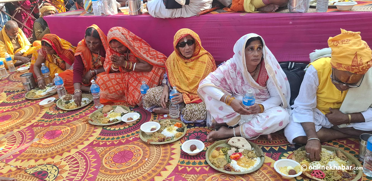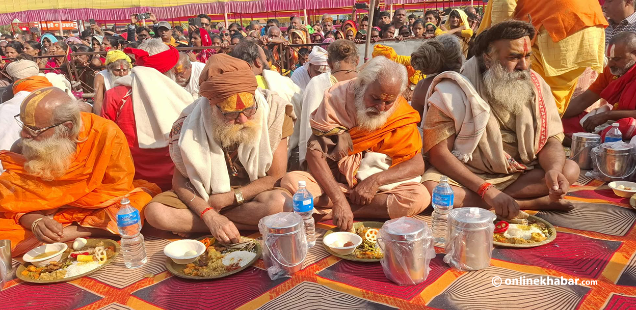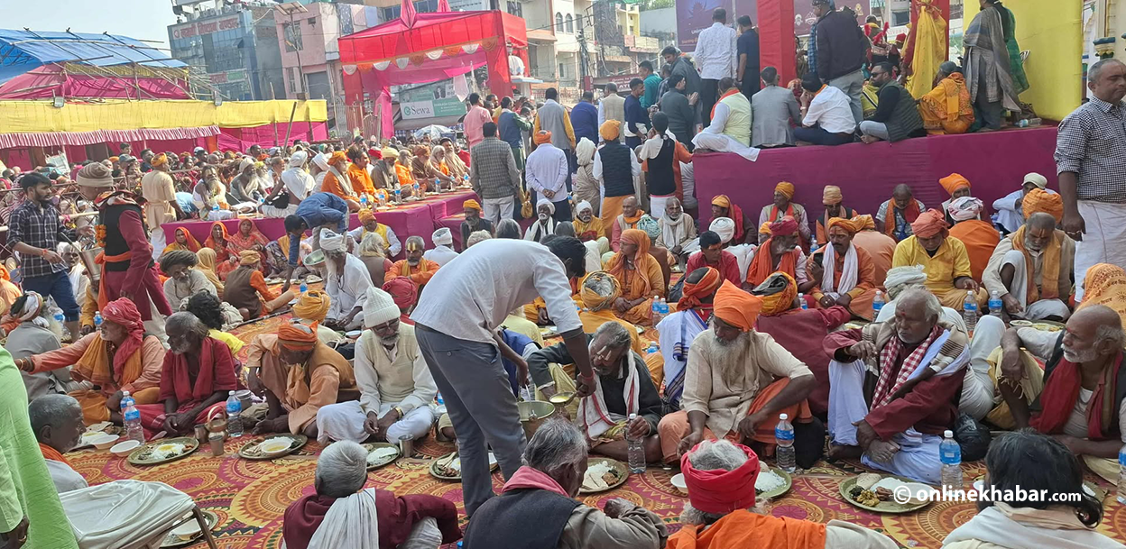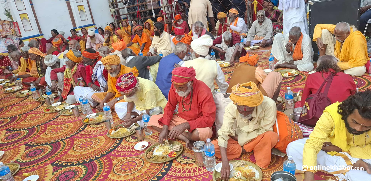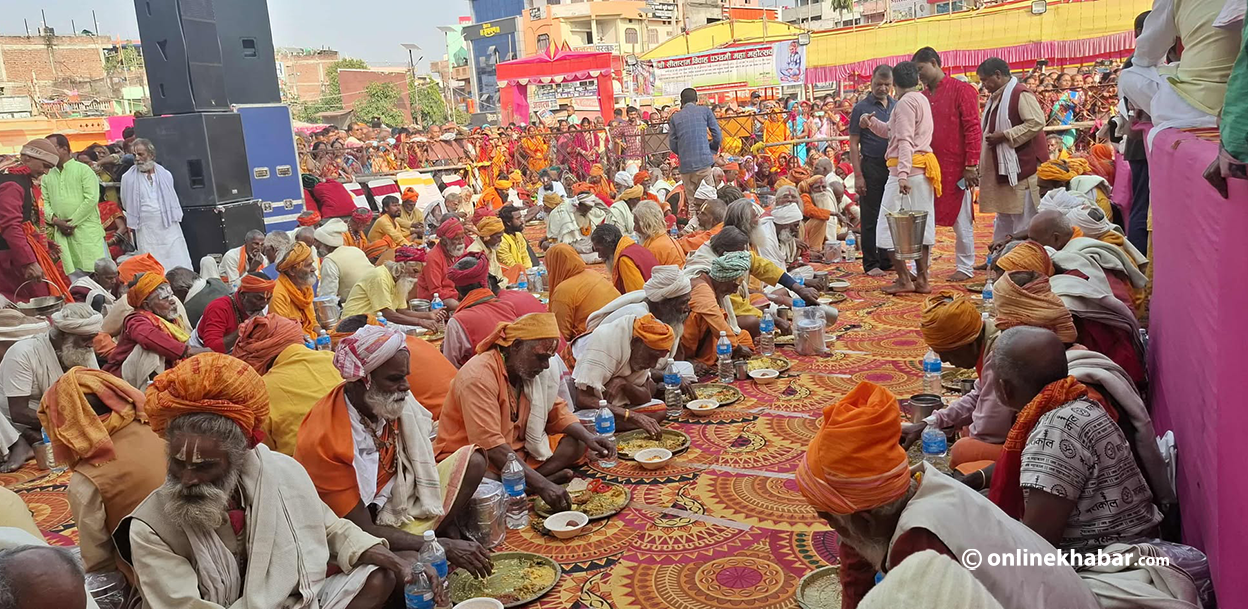 १० मंसिर, जनकपुरधाम । रामकलेवा गरी सप्ताह व्यापी सीताराम विवाहपञ्चमी महोत्सव सम्पन्न भएको छ । राम र जानकीको विवाह पश्चात जन्तीको रूपमा आएका साधुशन्तलाई ५६ व्यञ्जन मिष्ठान भोजन गराई बिदाइ गरी महोत्सव सम्पन्न भएको हो ।