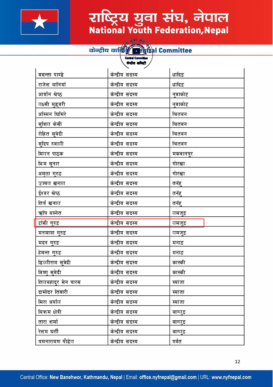 युवा संघको केन्द्रीय सदस्य सूचीमा टासी । यतिबेला युवा संघको नेतृत्व किरण पौडेलले गरेका थिए ।