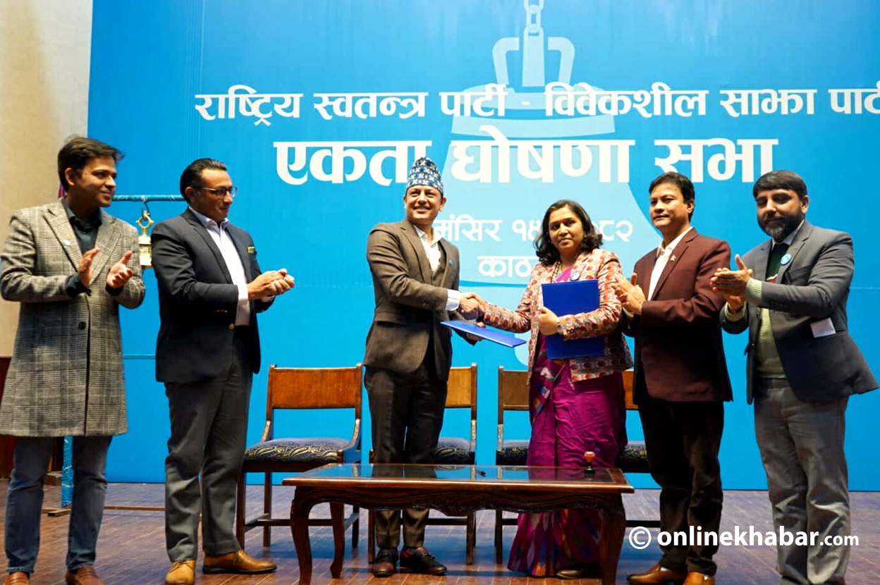 १४ मंसिर, काठमाडौं । विवेकशील साझा पार्टी र रास्वपाको बीचमा आइतबार यस्तो एकता भयो, जहाँ कुनै शर्तहरू थिएनन् । एउटासँग विगतको वैकल्पिक विरासत थियो, अर्कोसँग वर्तमानको शक्ति र संख्या । एउटाले विगतमा साना-साना लो प्रोफाइलका अभियानहरूमार्फत नागरिकको मन जित्दै थियो, अर्कोले त्यसैको बलमा ०७९ चुनावको मत । एउटासँग पहिल्यै स्थापित नीति थियो, अर्कोसँग मतदाताले मानिसकेको नेतृत्व ।