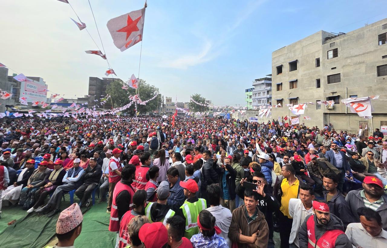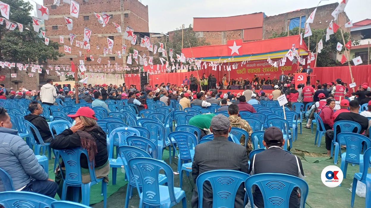 Generated by OK AI. Editorially reviewed.- नेपाली कम्युनिष्ट पार्टीले विराटनगरमा १५ दलको एकतापछि चौथो एकता सन्देशसभा आयोजना गर्यो।