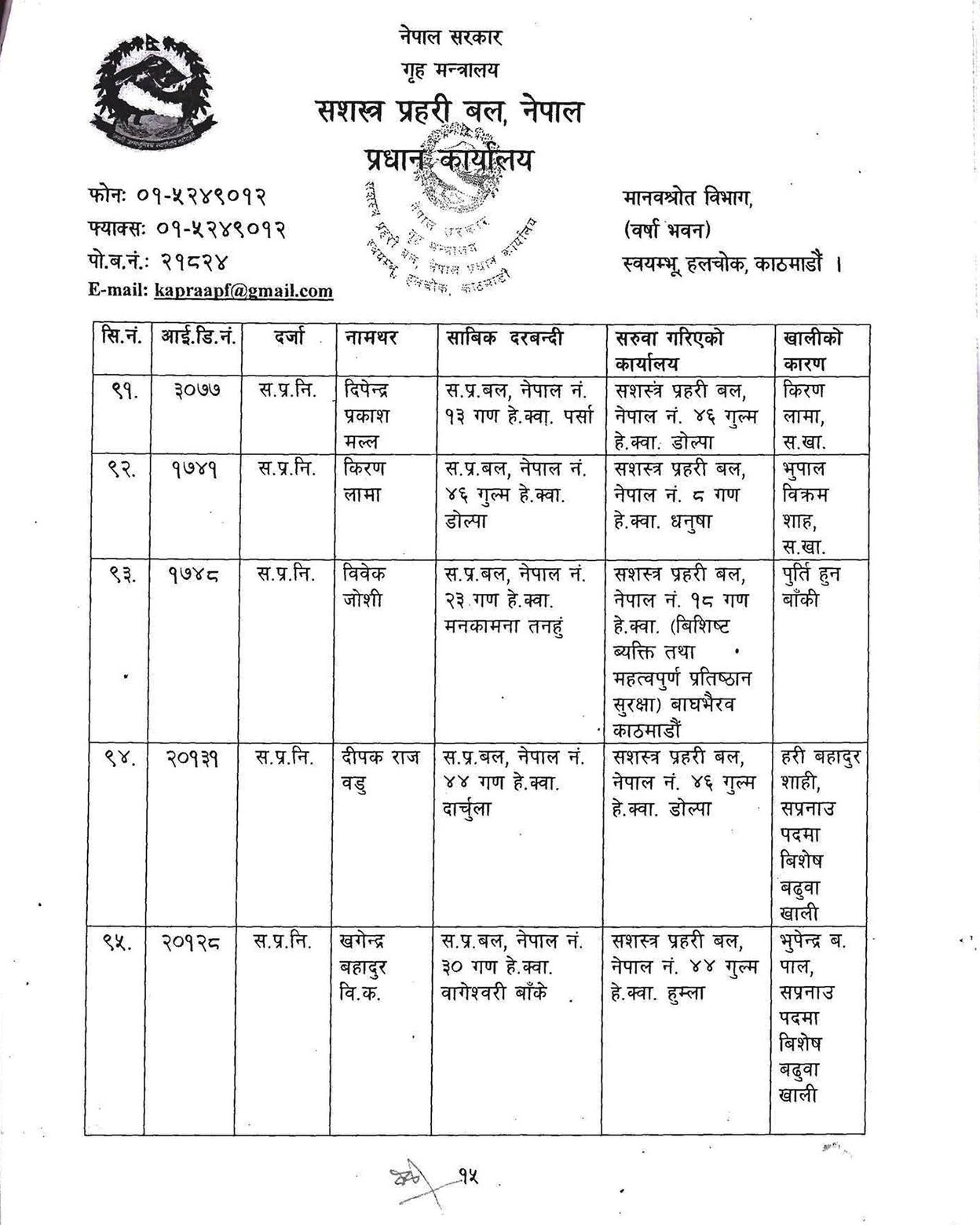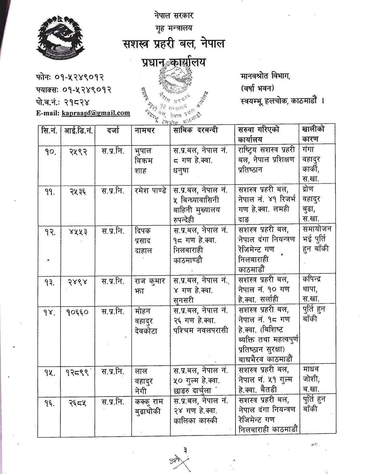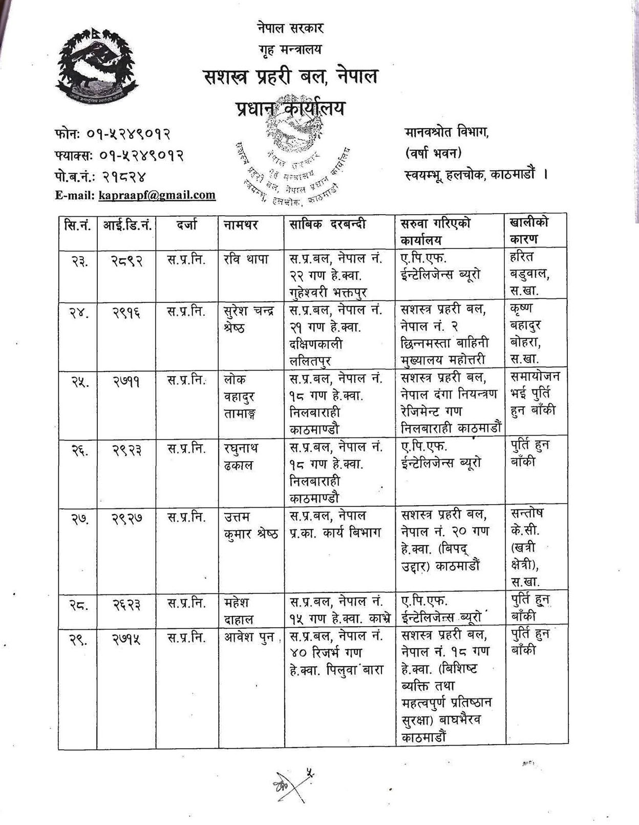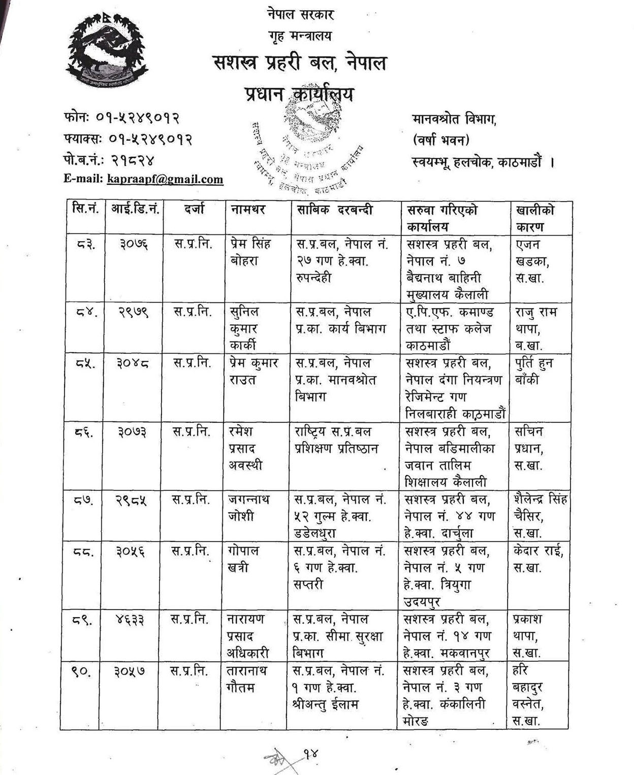 सशस्त्र प्रहरी प्रधान कार्यालय हल्चोकले एक सूचना जारी गर्दै १०३ इन्पेक्टरको सरुवा भएको जानकारी दिएको हो ।