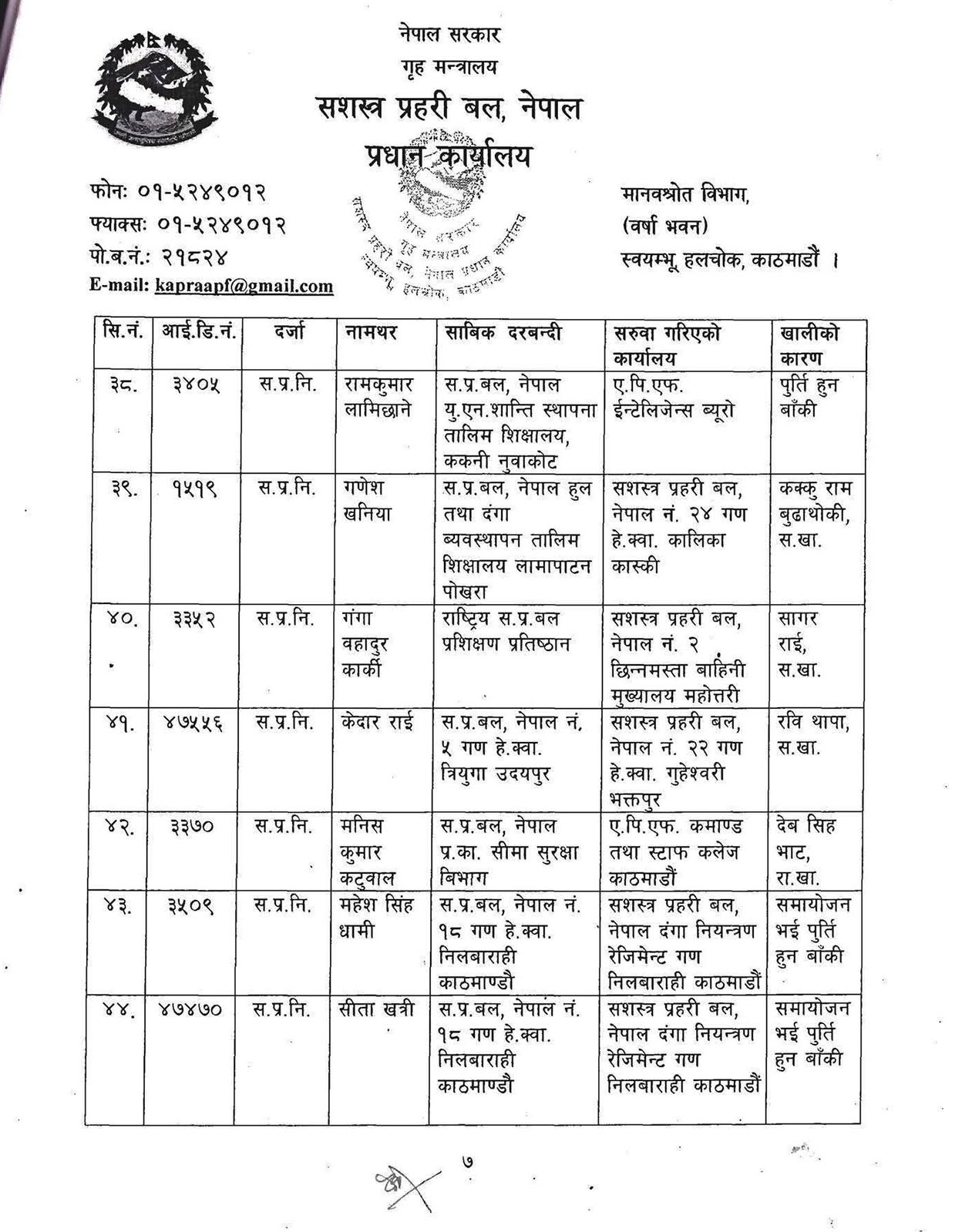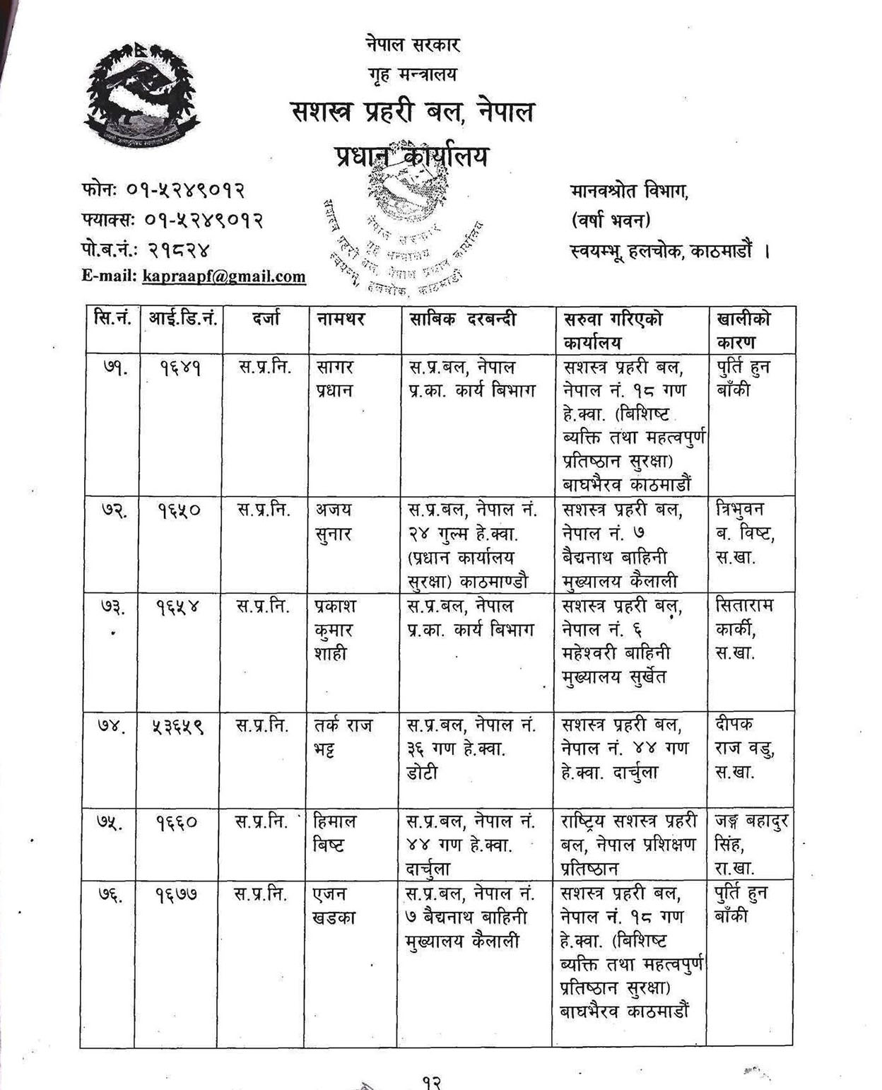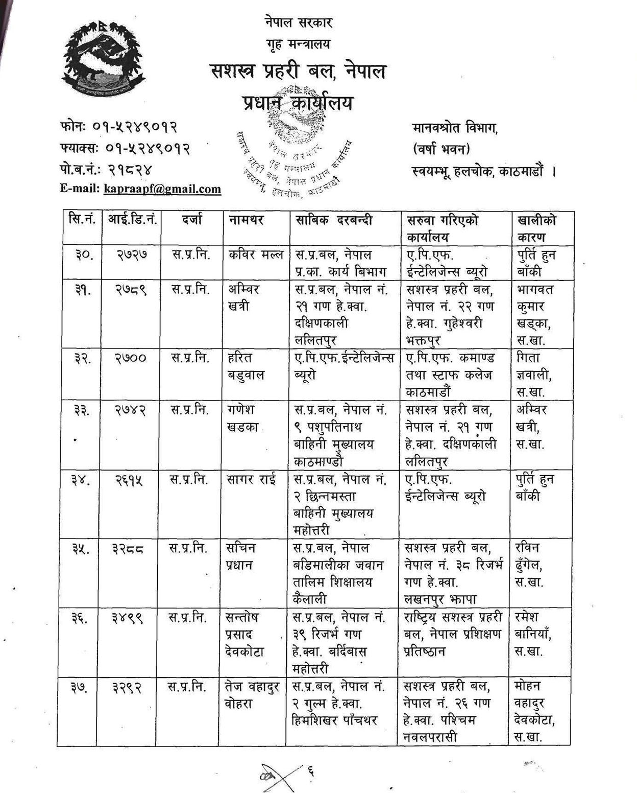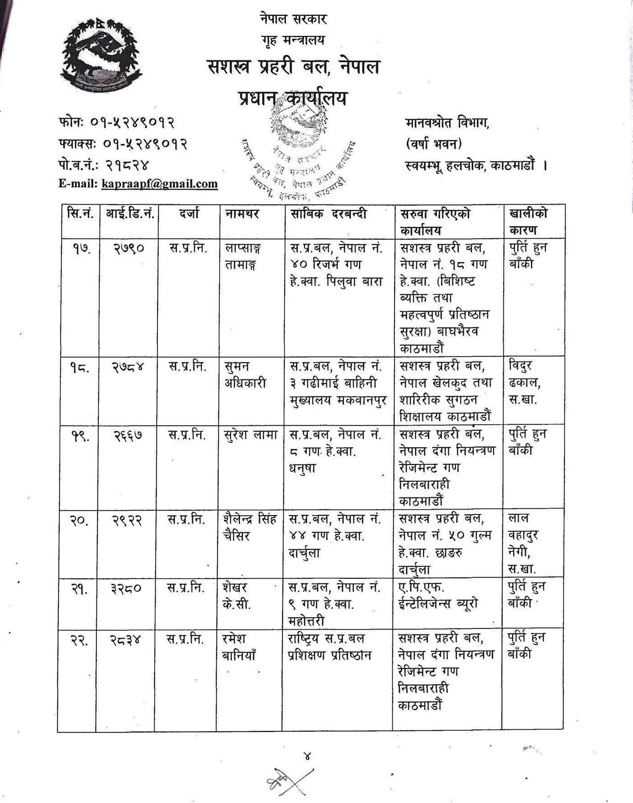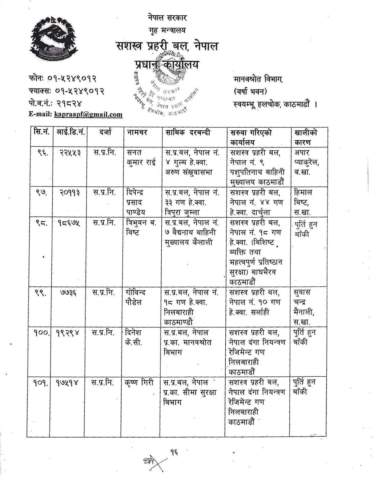 सशस्त्र प्रहरी प्रधान कार्यालय हल्चोकले एक सूचना जारी गर्दै १०३ इन्पेक्टरको सरुवा भएको जानकारी दिएको हो ।