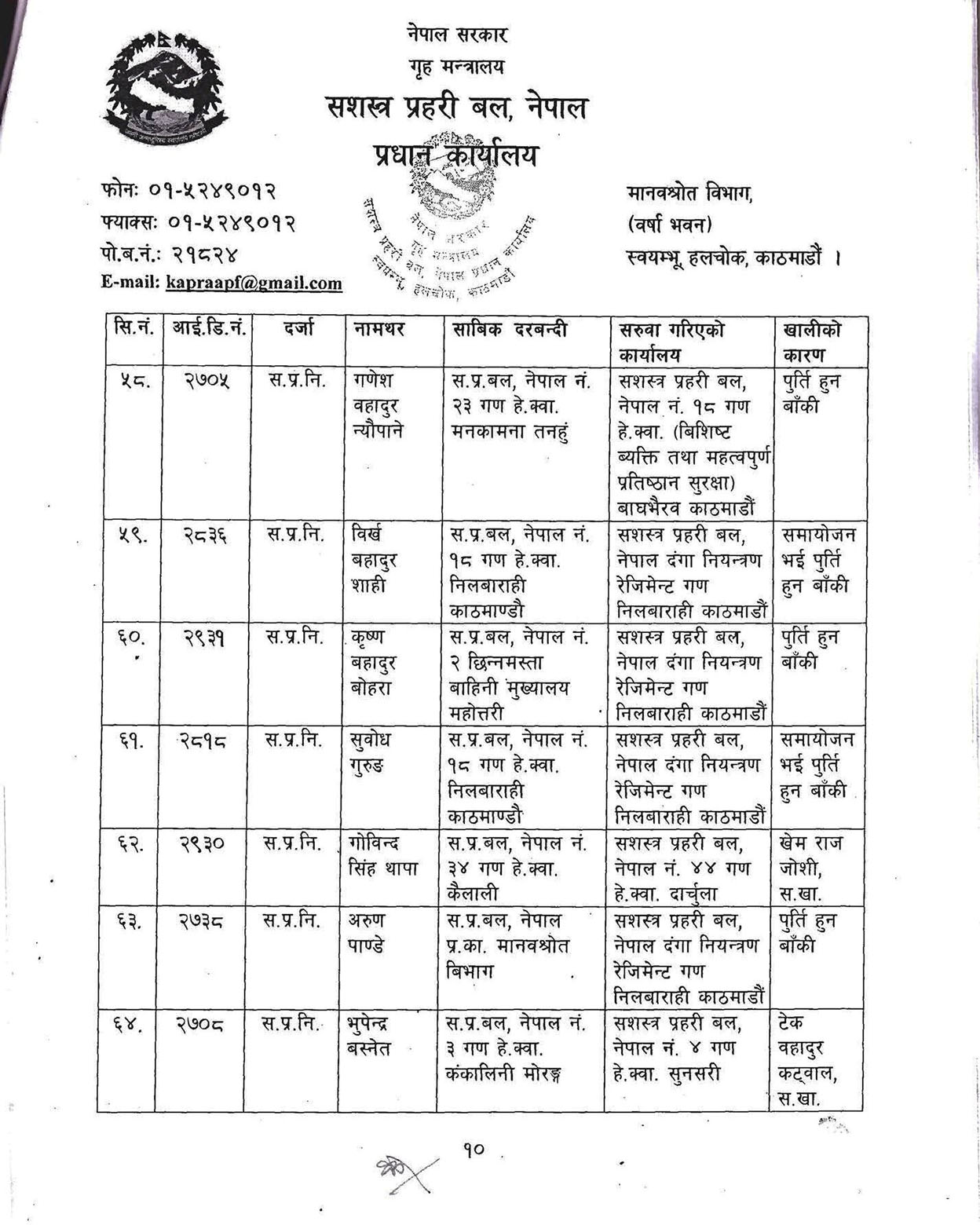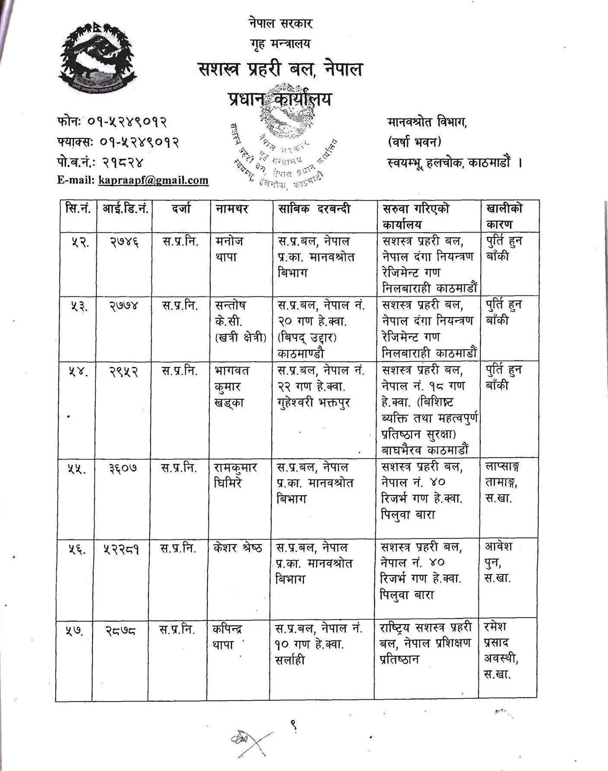 सशस्त्रका १०३ इन्स्पेक्टरको सरुवा, को कहाँ ? (सूचीसहित)