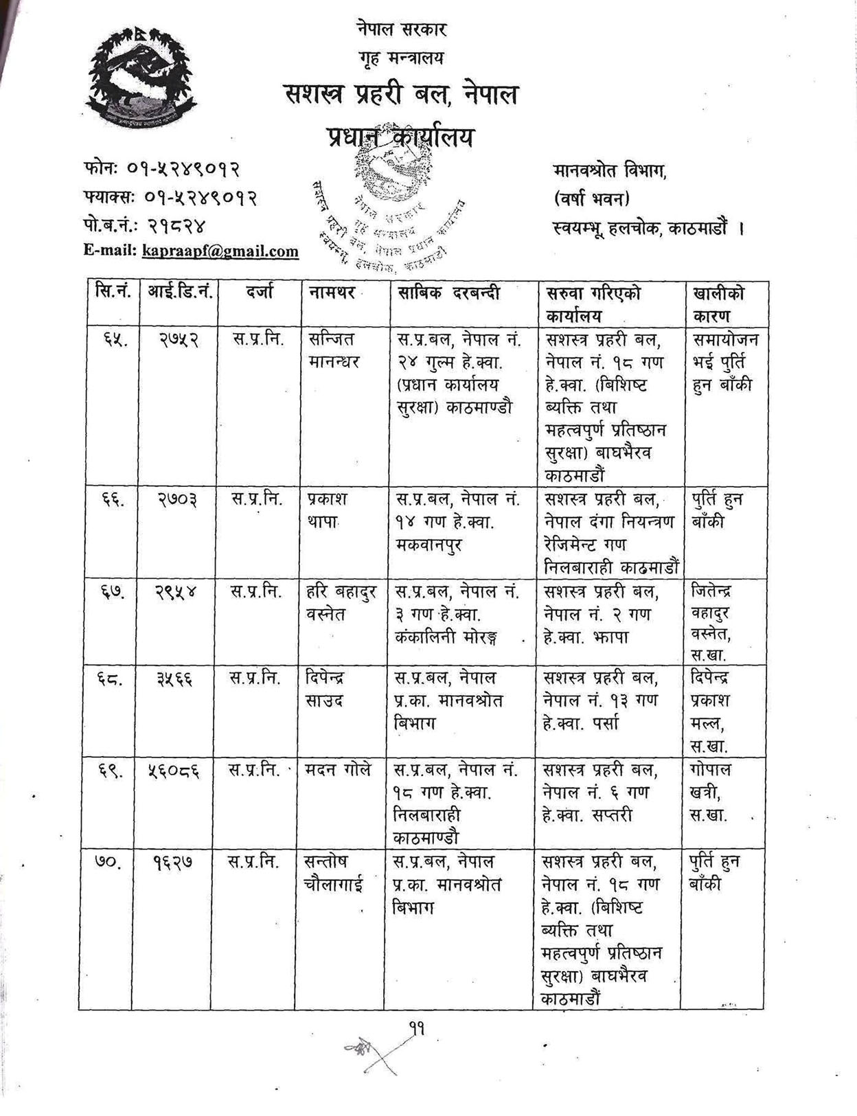 सरुवा सूची अनुसार विदुर ढकाल गढिमाई बाहिनी मुख्यालय मकवानपुरमा सरुवा भएको छ ।