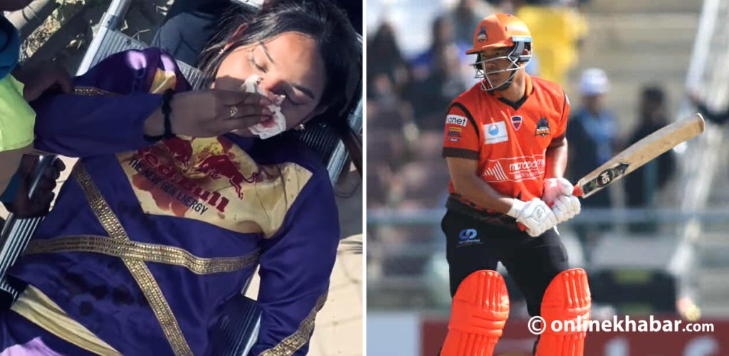 जनकपुर बोल्ट्ससँगको खेलमा चितवन राइनोजका कप्तान कुशल  मल्लले छक्का हानेको बलले उनलाई लागेको थियो । उनी रगताम्मे भएकी थिइन् ।