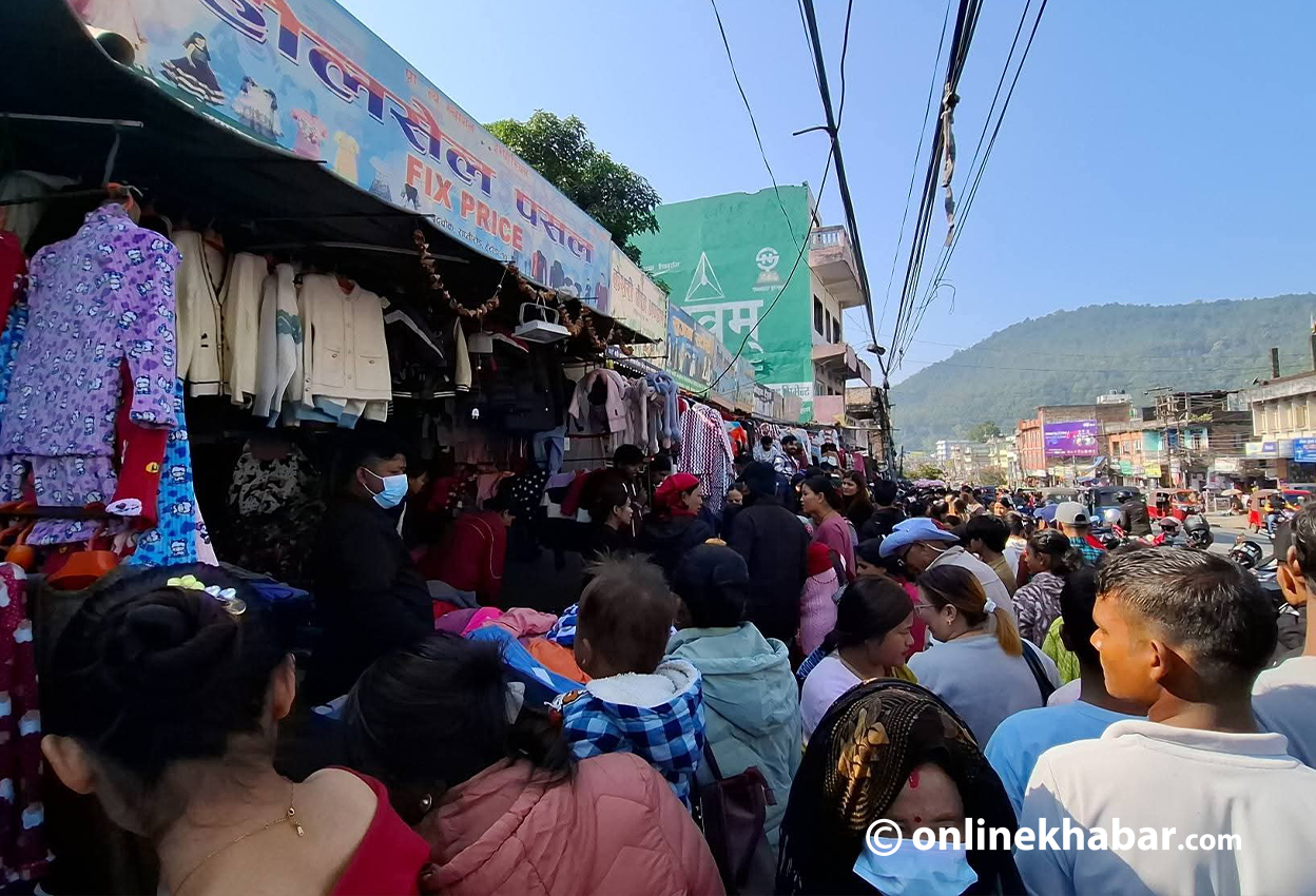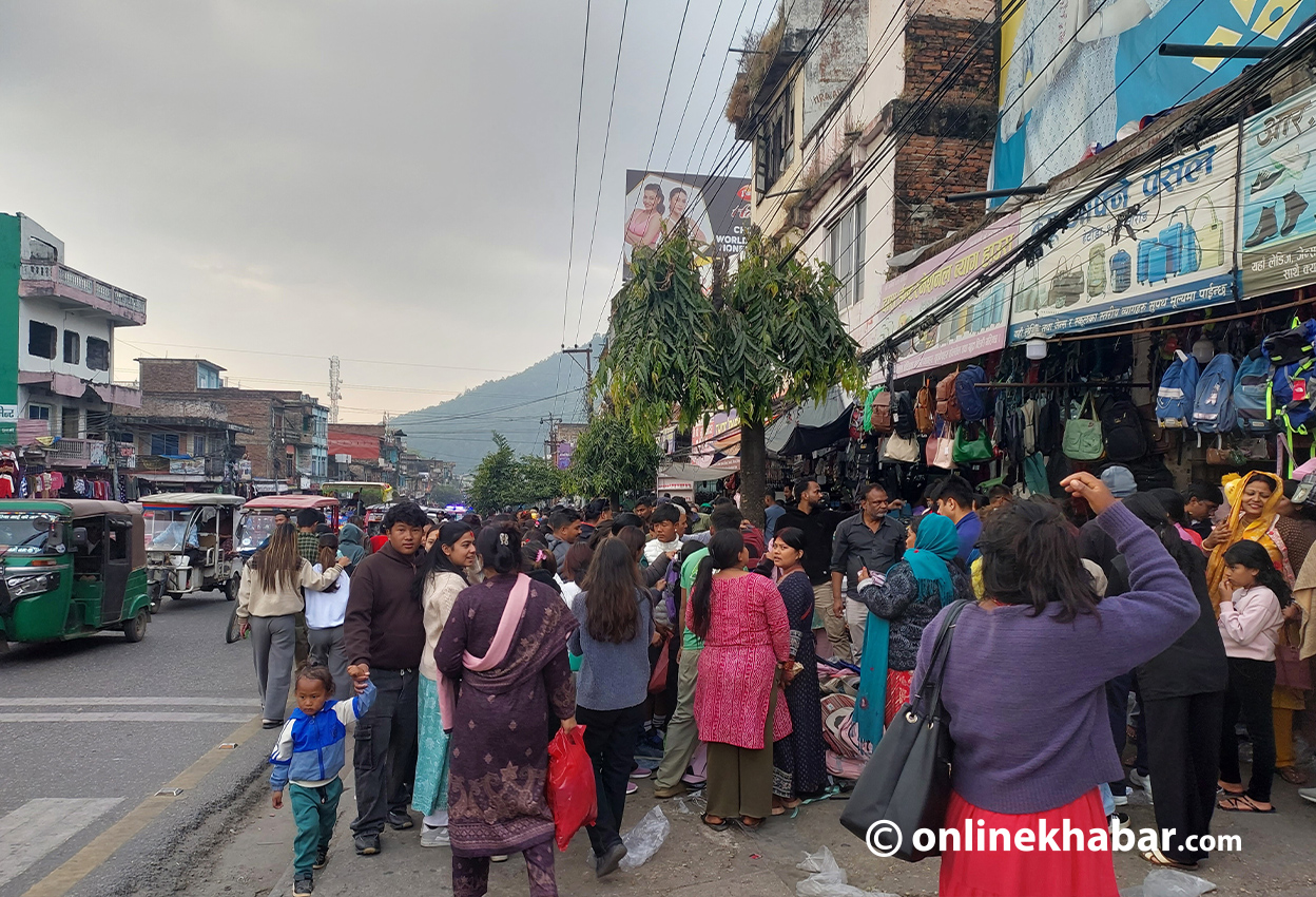 सर्वसाधारणको भीडले सीमाचोक, बुद्धचोक, पिपलबोटचोक, राप्तिरोडका दुवै सडक पेटीहरु भरिभराउ भएका छन् ।