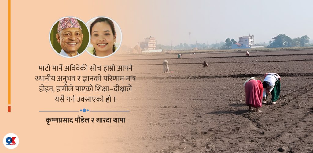 माटो मार्ने अविवेकी सोच हाम्रो आफ्नै स्थानीय अनुभव र ज्ञानको परिणाम मात्र होइन, हामीले पाएको शिक्षा र दीक्षाले यसै गर्न उक्साएको हो । खासगरी, आधुनिकता र नाफाका नाममा आज समग्र जैविक जगतको विघटन तीव्र भइरहेको छ । माटोमा प्राङ्गारिक पदार्थ घट्दै जाँदा खनिज, हावापानी र सूक्ष्म जीव बीचको अन्तरसम्बन्धको जालो भत्कँदै गएको छ । यही प्राङ्गारिक पदार्थ असंख्य सूक्ष्मजीवहरूको वासस्थान हो, जसले बोटबिरुवालाई खाना बनाउन मद्दत गर्छन् । तर जीवन्त माटोमा रहेका सूक्ष्मजीव नष्ट हुँदै जाँदा बोटबिरुवाले पोषणको प्राकृतिक चक्र पूरा गर्न सक्दैनन् । यसले माटोमा रहेका जैविक, रासायनिक र भौतिक गुणलाई कमजोर बनाउँछ र दीर्घकालीन उत्पादन क्षमतामा समेत कमी ल्याउँछ । तर, जैविक सन्तुलन नष्ट गरेर गरिने यस्तो अभ्यासलाई नै आज आधुनिक कृषि भनेर प्रायोजित गरिंदैछ ।