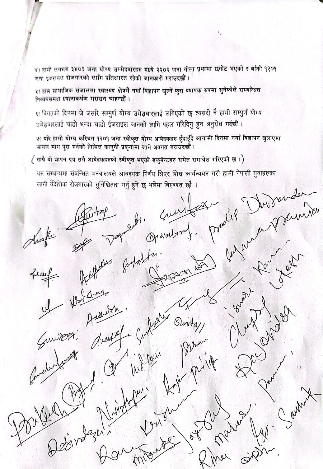 यही समूहका १ हजार २ सय १ जनाले आफूहरूलाई नै प्राथमिकतामा राखेर इजरायल पठाउन व्यवस्था मिलाउन सरकारसँग माग गरेका हुन् ।