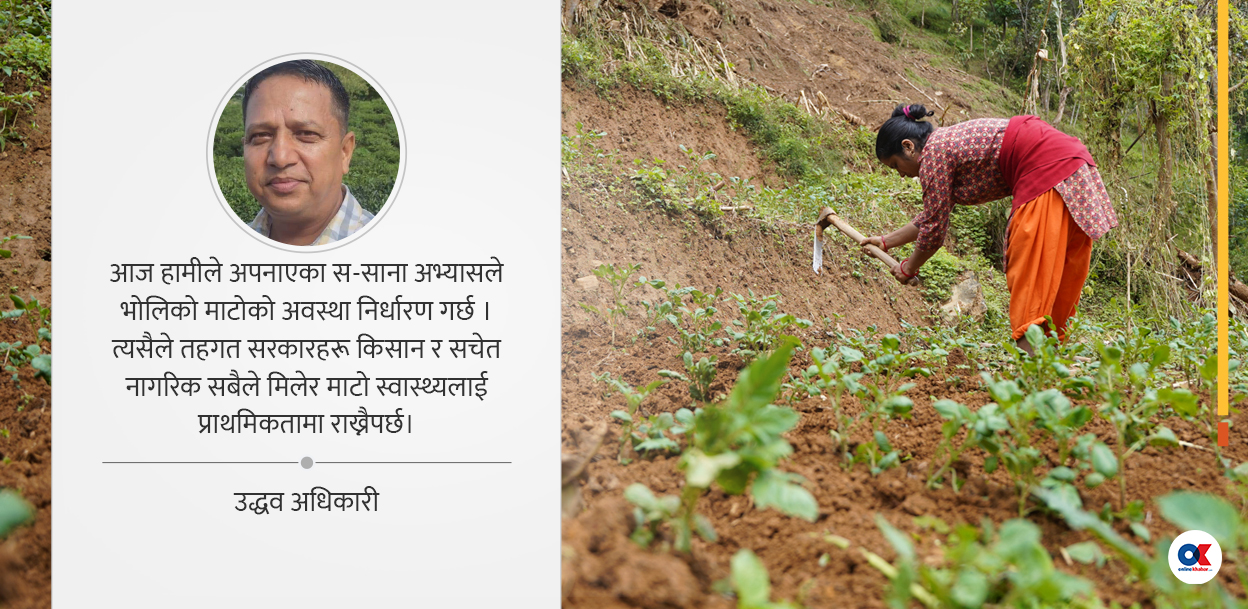हामी देश विकास र आर्थिक समृद्धिको धेरै कुरा गर्छौं तर दीर्घकालीन खाद्य सुरक्षा र भावी पुस्ताको भविष्यसँग जोडिएको माटोको स्वास्थ्य जस्तो यति महत्वपूर्ण विषयमा कम सरोकार राख्छौं।