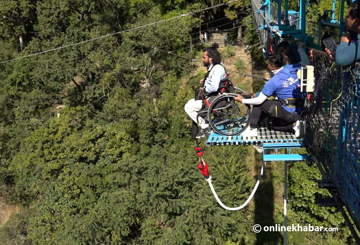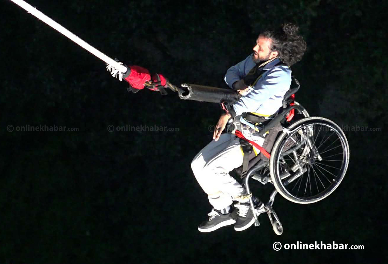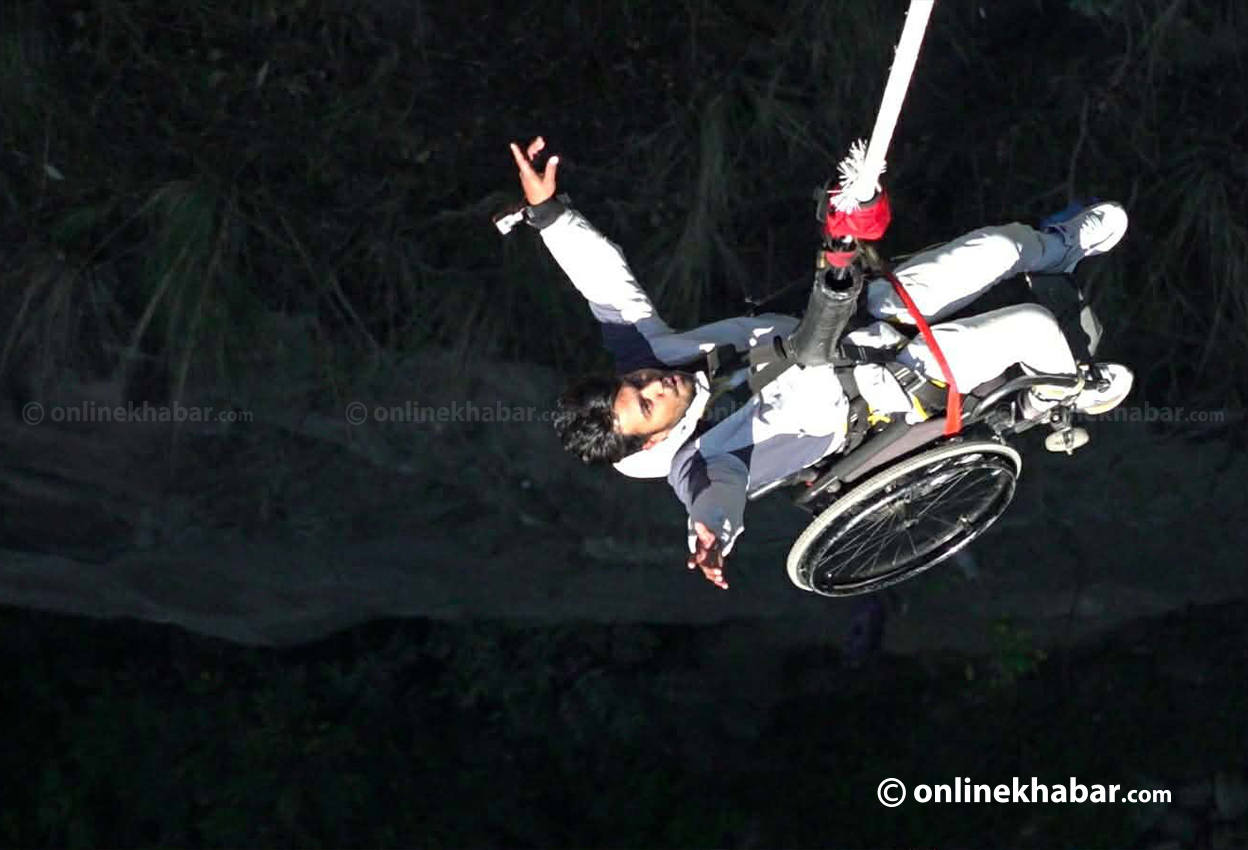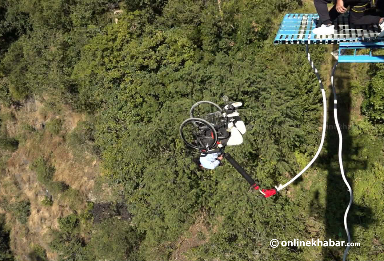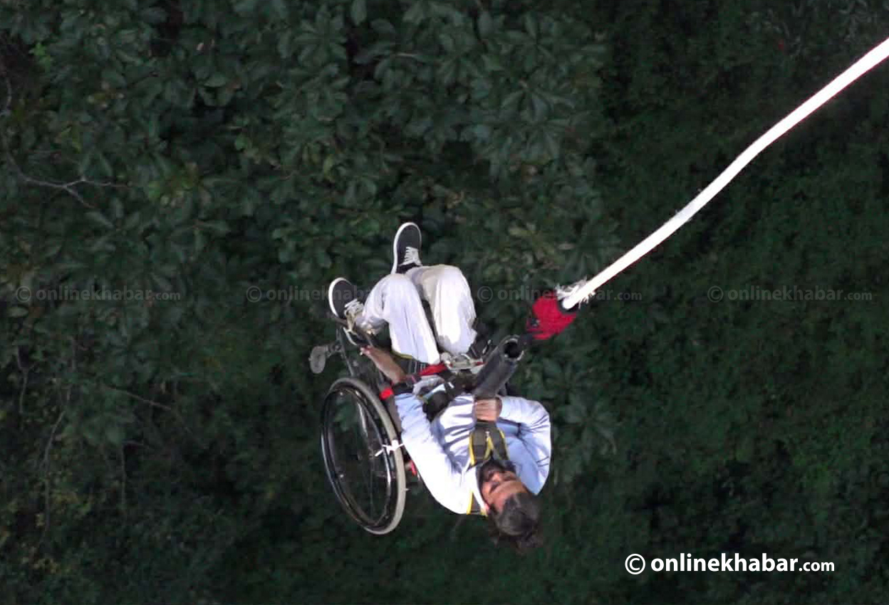 सिन्धुपाल्चोकको चौतारा साँगाचोकगढी नगरपालिका– ५ का दिलिप सापकोटा र सिन्धुली कमलामाई ५ का शिशिर दाहालले सिन्धुपाल्चोकको भोटेकेशी नदीमाथिको झोलुङ्गे पुलबाट ह्वीलचियरसँगै बन्जी जम्प गरेका हुन् ।