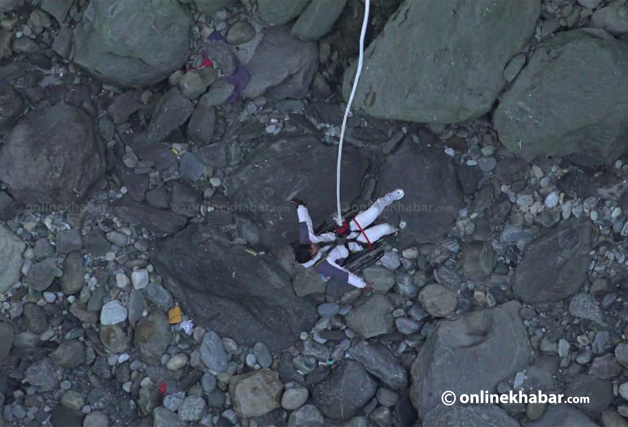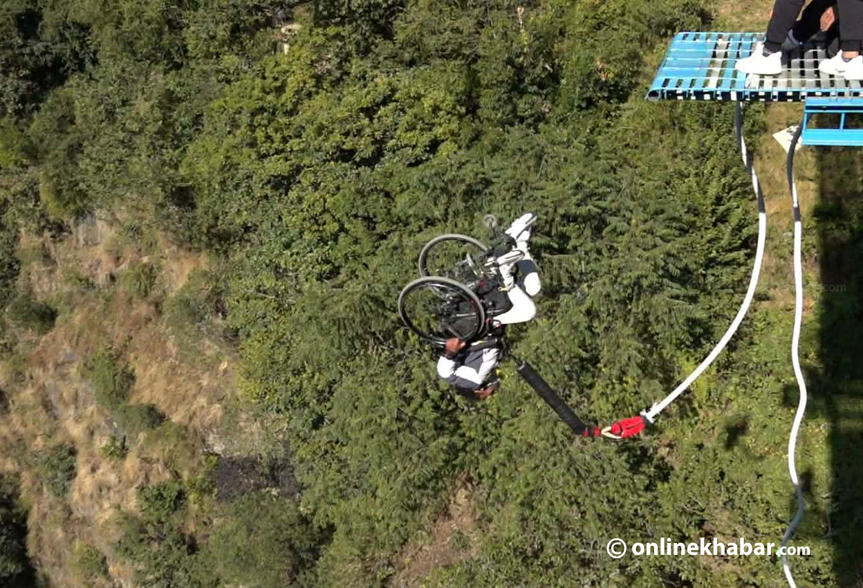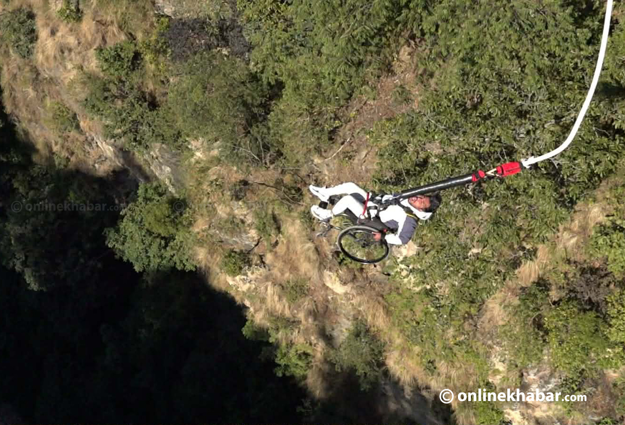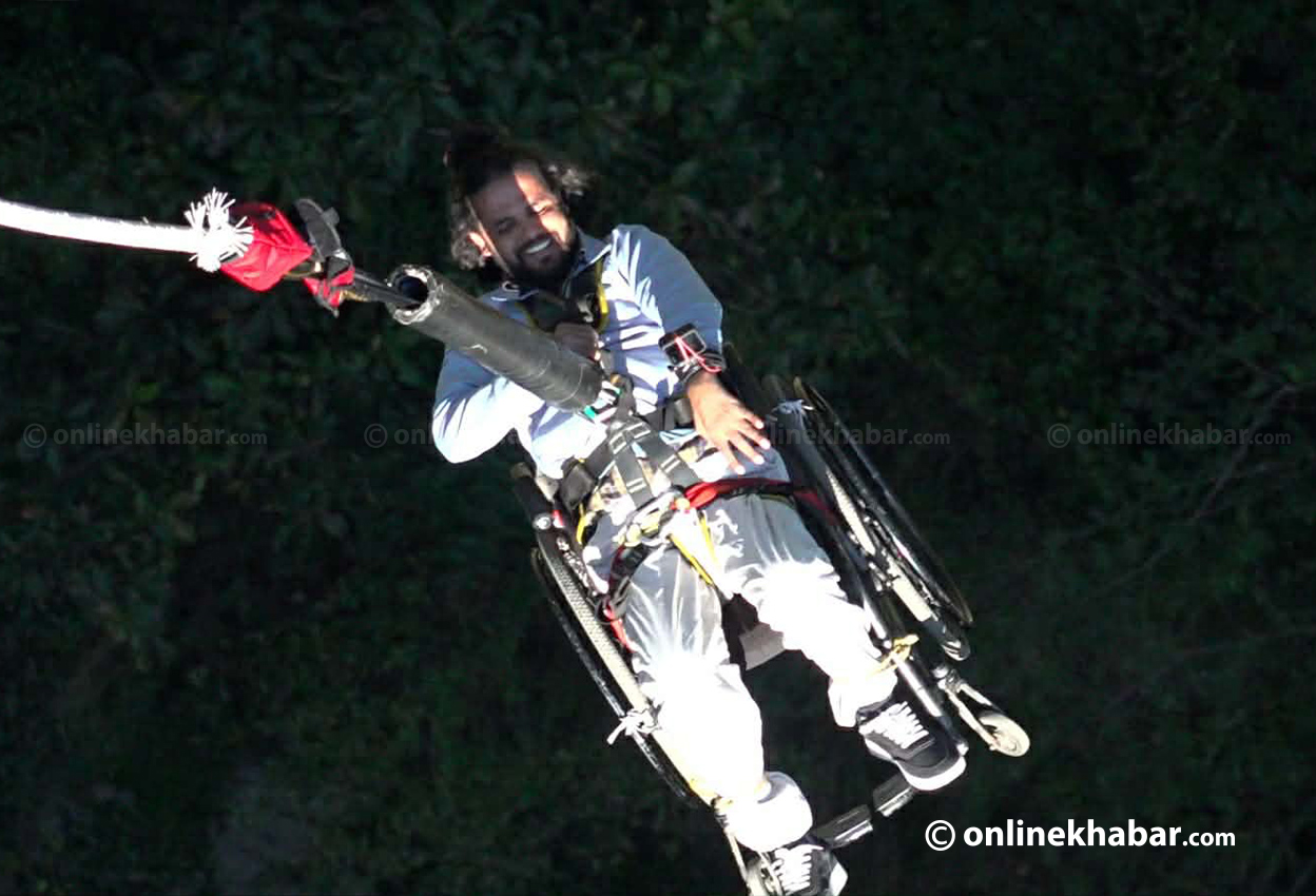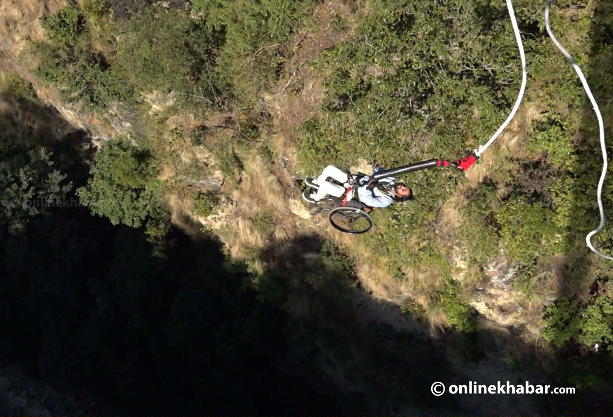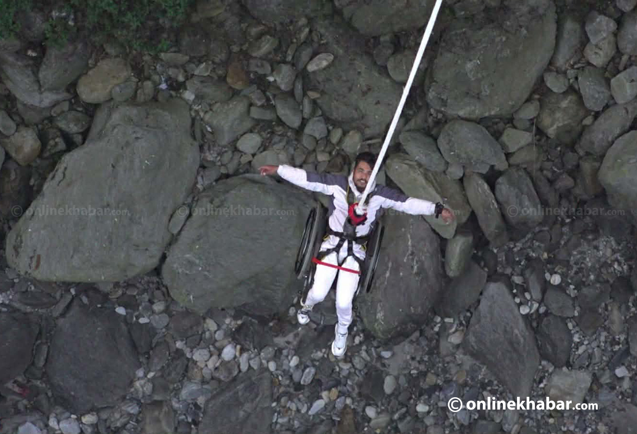 सिन्धुपाल्चोकको चौतारा साँगाचोकगढी नगरपालिका– ५ का दिलिप सापकोटा र सिन्धुली कमलामाई ५ का शिशिर दाहालले सिन्धुपाल्चोकको भोटेकेशी नदीमाथिको झोलुङ्गे पुलबाट ह्वीलचियरसँगै बन्जी जम्प गरेका हुन् ।