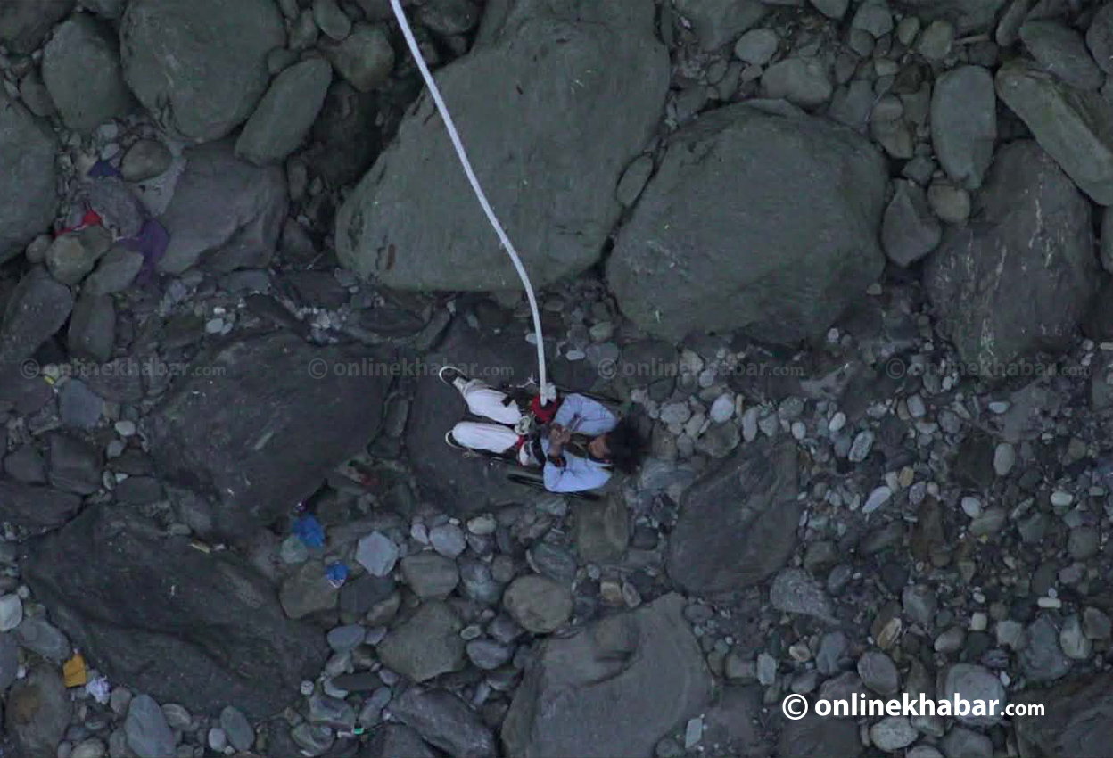 दुइमध्ये पहिले दिलिपले १६० मिटर उचाइमा रहेको झोलुङ्गे पुलमाथिबाट बन्जी जम्प गरे, लगत्तै शिशिर पनि बन्जी जम्पमा सफल भए ।