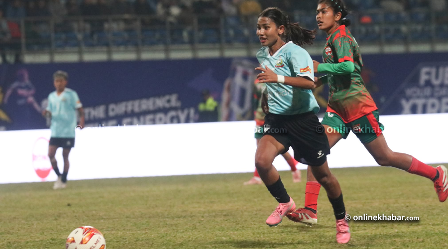 १९ मंसिर, काठमाडौं । शुक्रबारदेखि काठमाडौंमा सुरु भएको साफ महिला क्लब च्याम्पियनसिप अन्तर्गत आफ्नो पहिलो खेलमा एपीएफ क्लबले बंगलादेशको नसरिन स्पोर्ट्स एकेडेमीलाई ४-० ले पराजित गर्दै शानदार सुरुवात गरेको छ ।