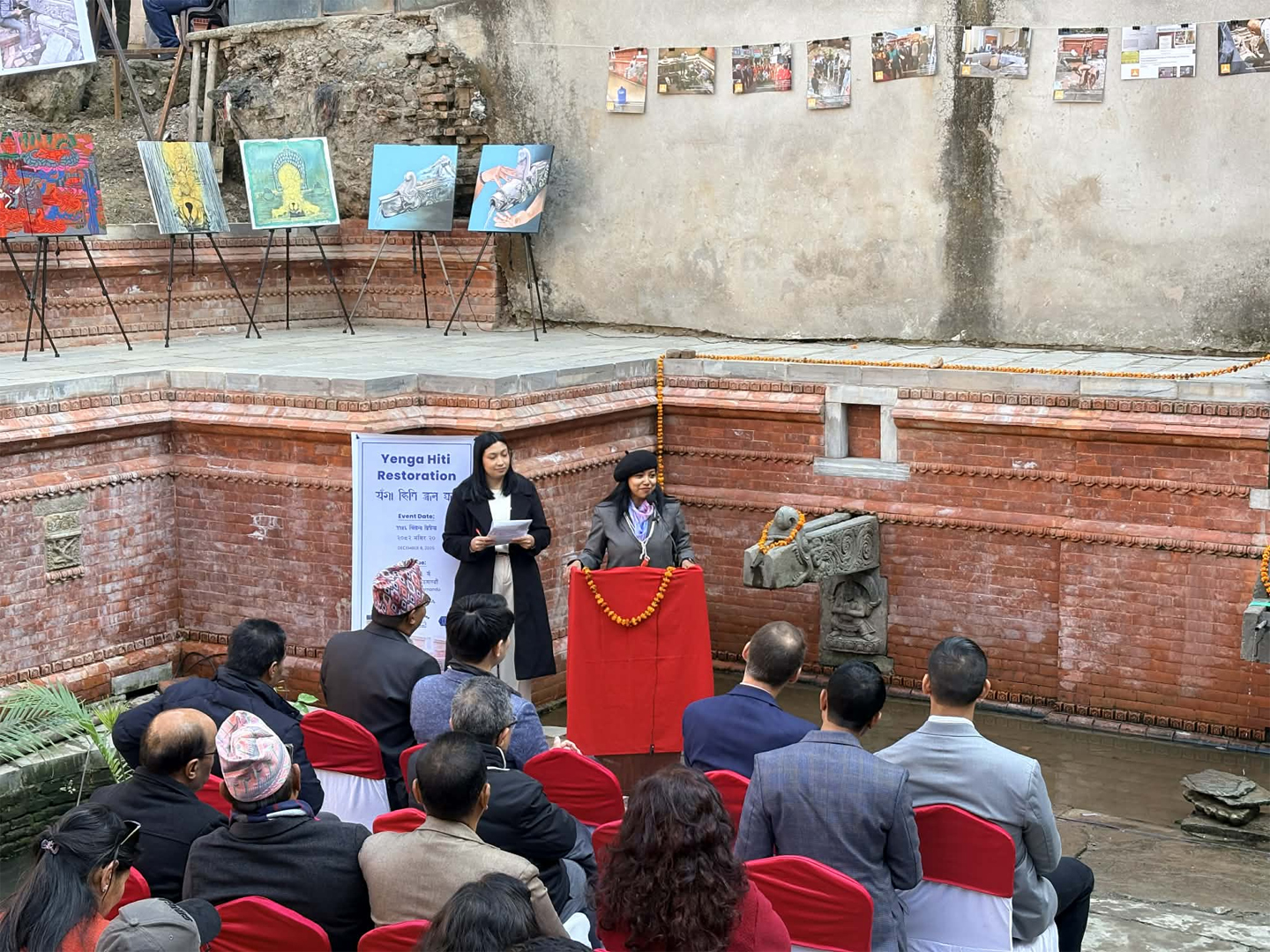 “येँगा हिटीको जीर्णोद्धार केवल एउटा सम्पदा स्थलको मर्मत कार्य मात्र नभई १५ सय वर्षभन्दा अघिदेखि यो समुदाय र नेपाल राष्ट्रकै सेवा गर्दै आएको एउटा जीवन्त जलस्रोत प्रणालीको नवीकरण पनि हो’ उनले भने, ‘अमेरिका र नेपालबिचको मजबुत र चिरस्थायी साझेदारीप्रति अमेरिकी दूतावास प्रतिबद्ध रहेको छ । हामी सांस्कृतिक संरक्षण, सामुदायिक उत्थानशीलता र दुवै देशको समृद्ध भविष्यलाई सहयोग पुर्याउन जारी राख्नेछौं ।’