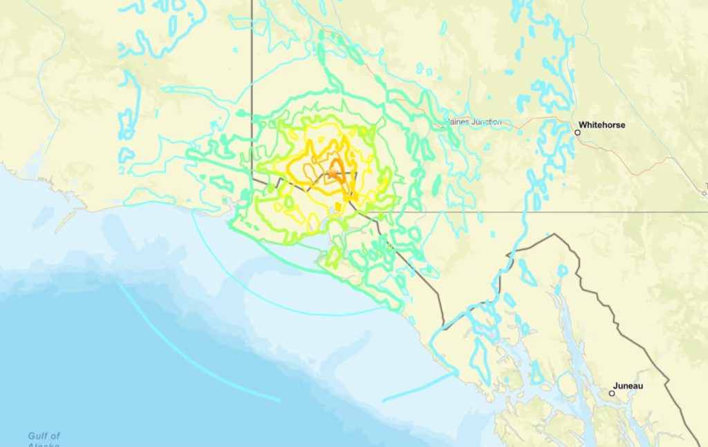 भूकम्प युकोन टेरिटोरीमा स्थानीय समय अनुसार शनिबार दिउँसो १:४१ बजे गएको हो, जसको केन्द्रबिन्दु ह्वाइटहर्सबाट करिब २५० किलोमिटर पश्चिममा थियो । अमेरिकी भूगर्भ सर्वेक्षणका विज्ञहरूका अनुसार भूकम्प करिब १० किलोमिटर गहिराइमा गएको थियो ।
