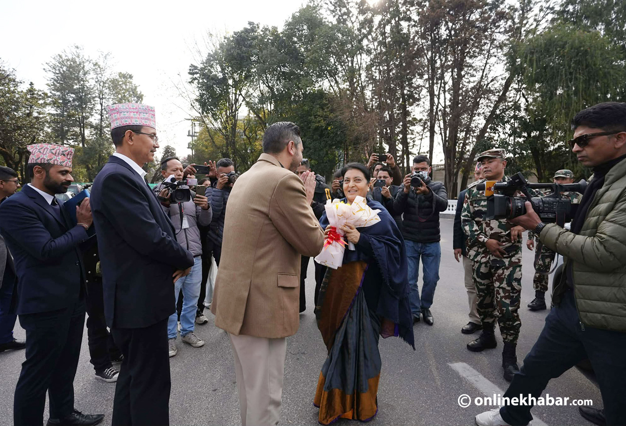 पूर्वराष्ट्रपति भण्डारीलाई सिंहदरबारमा सञ्चार तथा सूचना, प्रविधिमन्त्री जगदीश खरेलले स्वागत र सहजीकरण गरेका थिए ।