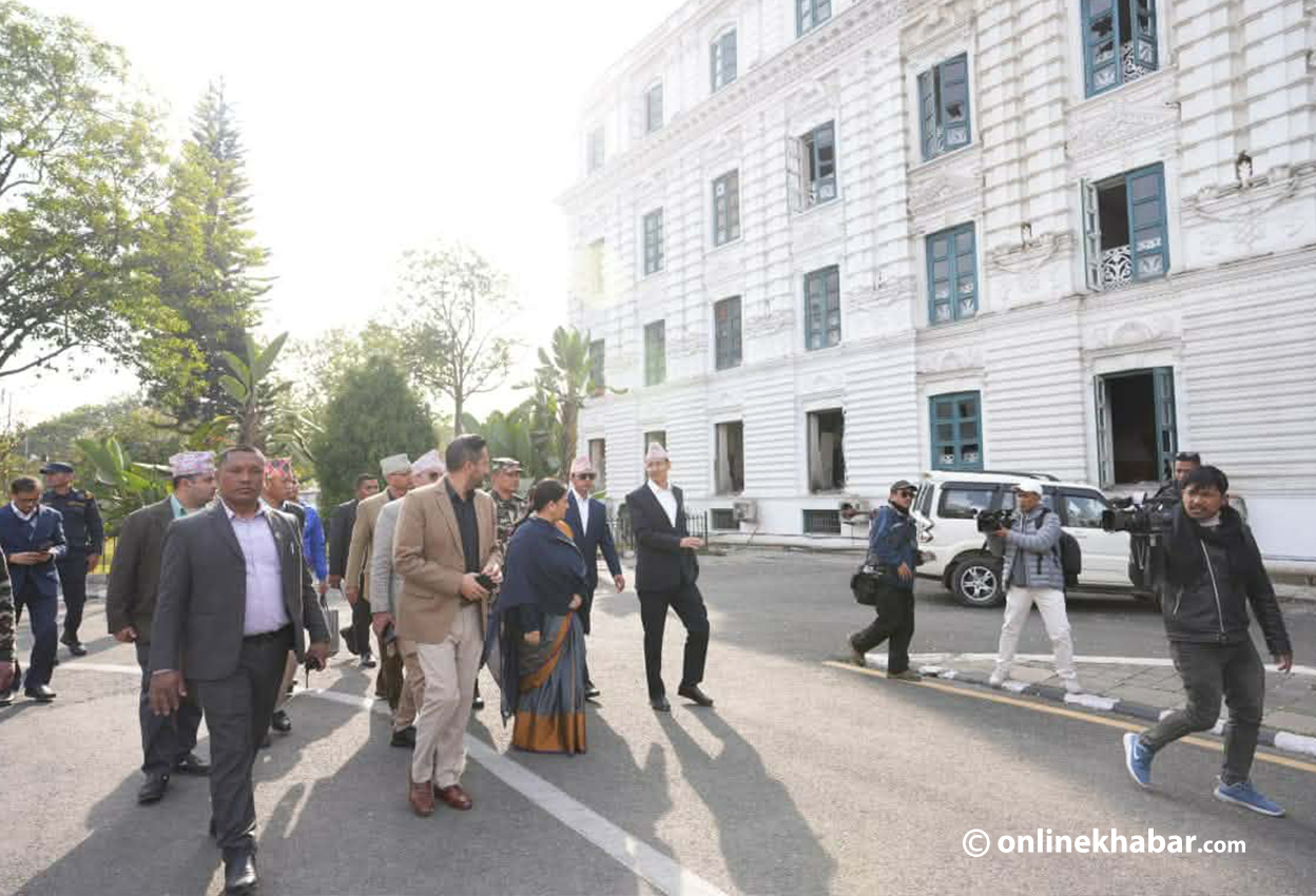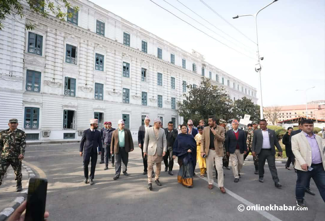 आइतबार पूर्वराष्ट्रपति भण्डारी जेनजी आन्दोलनमा जलेको सिंहदरबार परिसरका विभिन्न संरचनाको अवलोकनका लागि पुगेकी हुन् ।