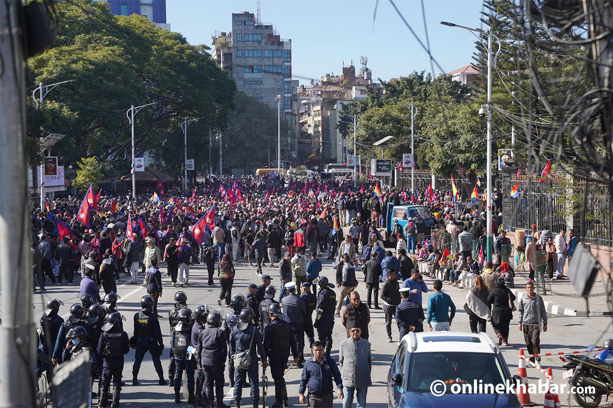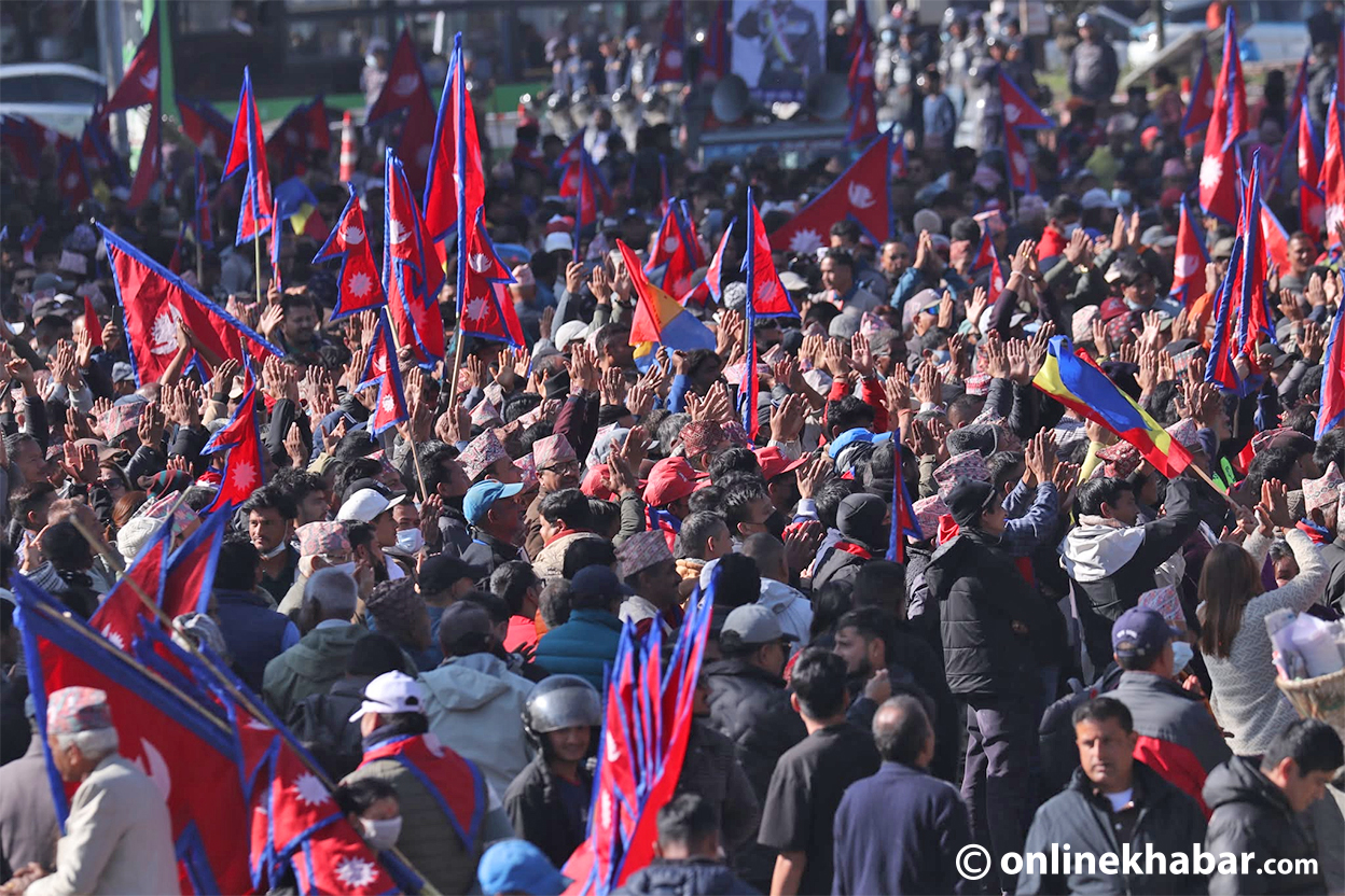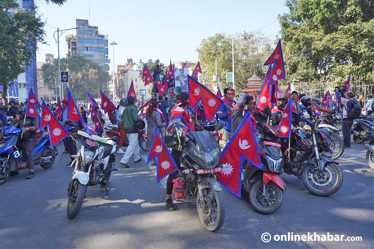 राप्रपाका नेता–कार्यकर्ताहरु जुलुससहित रत्नपार्क क्षेत्रमा भेला भएका छन् ।