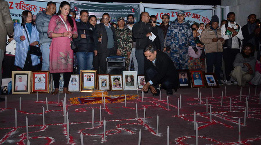 मंगलबार साँझ संसद् भवन अगाडि जेनजी शहीदको स्मरणमा दीप प्रज्वलन गरिएको हो ।