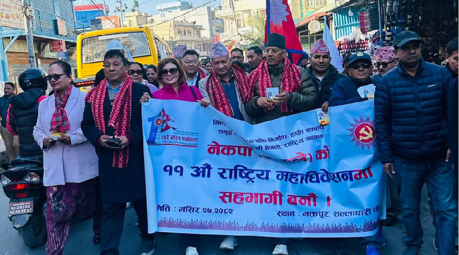 - मंसिर २७ गते दिउँसो साढे १२ बजे भक्तपुरको सल्लाघारी महाधिवेशन उद्घाटन हुँदैछ र करिब तीन लाख जनसहभागिता जुटाउने तयारी छ।