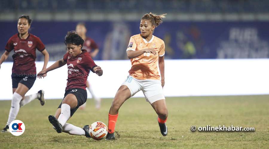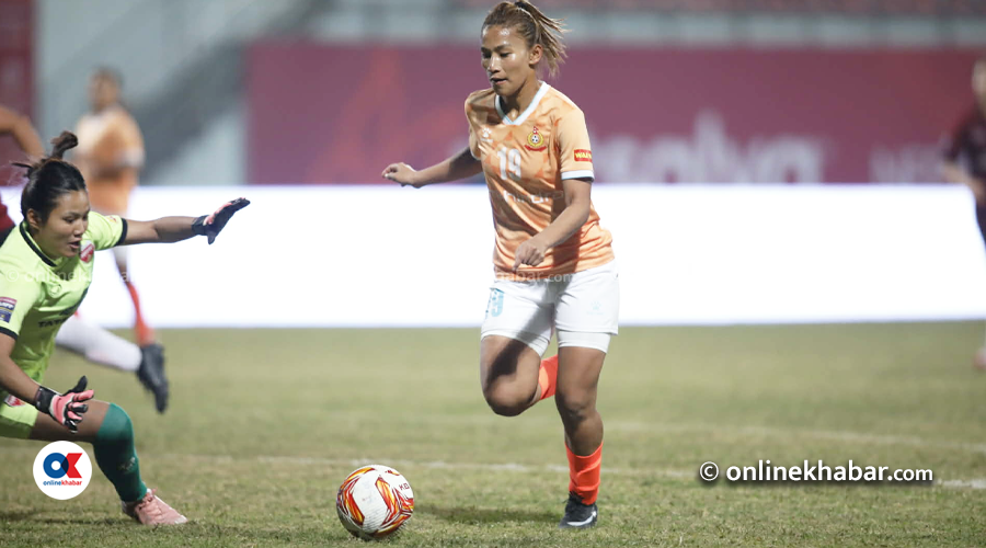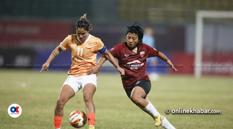 Generated by OK AI. Editorially reviewed.- काठमाडौंमा जारी साफ महिला क्लब च्याम्पियनसिप फुटबलमा एपीएफ एफसीले भुटानको ट्रान्सपोर्ट युनाइटेडसँग गोलरहित बराबरी खेलेको छ।