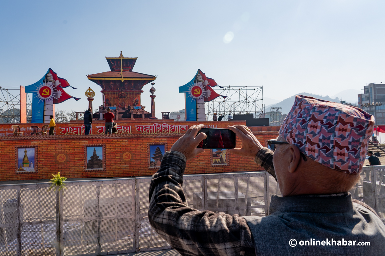 देशभरबाट राजधानीमा आइपुगेका प्रतिनिधिहरू भक्तपुरमा बन्दै गरेको उक्त स्टेजबाट उत्सुक देखिन्छन् । स्टेज व्यवस्थापनको कामको नेतृत्व पोलिटब्यूरो सदस्य विनोद श्रेष्ठले गरिरहेका छन् ।