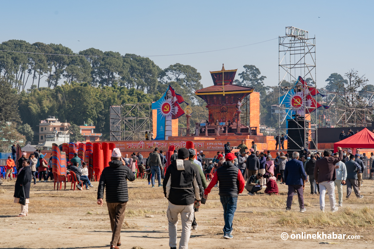 एमालेले महाधिवेशनस्थलमा स्टेज बनाउने काम अन्तिम चरणमा पुर्याएको छ । प्राय:जसो महाधिवेशनको उद्घाटन सत्र एमालेले फरक बनाउँदै आएको छ ।