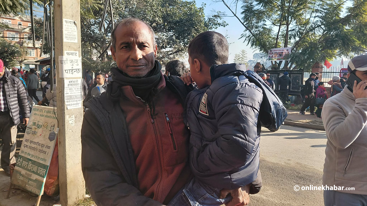 चितवनको कालिका नगरपालिका–५ देखि नाति बोकेर आएका छन्, सीताराम चौधरी । रातभरको मङ्सिरे चिसो छिचोल्दै एकाबिहानै एमाले महाधिवेशनस्थल आइपुगेका हुन् उनी ।