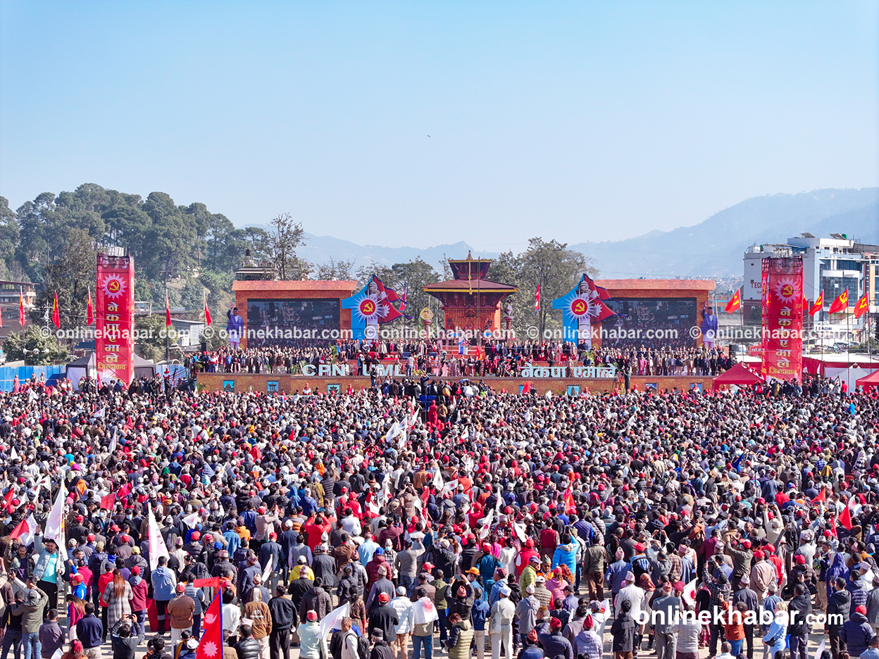 २७ मंसिर, काठमाडौं । एमाले महाधिवेशनस्थल उत्सवमय छ । झकिझकाउ मञ्च छ । र्याली, झाँकी, पञ्चेबाजाले सल्लाघारी गुञ्जिएको छ । विभिन्न जातजाति, भाषाभाषी झल्कने प्रस्तुति भइरहेका छन् । चोक चोकबाट निस्किएका र्या महाधिवेशनस्थलमा पुगेका छन् । नेताहरू मञ्चतर्फ छन् । कार्यकर्ता मञ्चको अगाडि ।