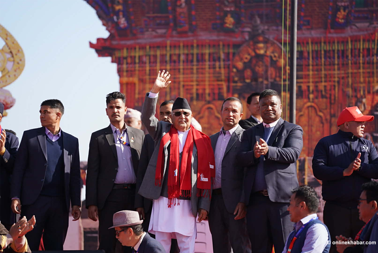 कार्यक्रमस्थलमा पार्टीका वरिष्ठ उपाध्यक्ष ईश्वर पोखरेलसहित उपाध्यक्ष, महासचिव, उपमहासचिव तथा अन्य पदाधिकारीहरू यसअघि नै पुगिसकेका छन् । ओली कार्यक्रमस्थल प्रवेश गरेसँगै नेता तथा कार्यकर्ताहरूले नाराबाजी र तालीका साथ स्वागत गरे ।