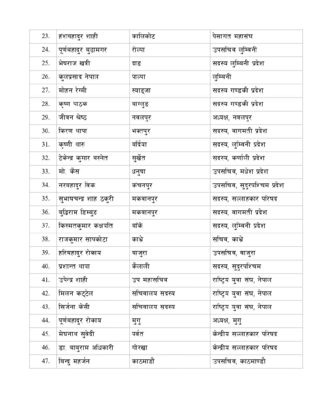 यी हुन् एमालेका १०८ मनोनित सदस्यहरू