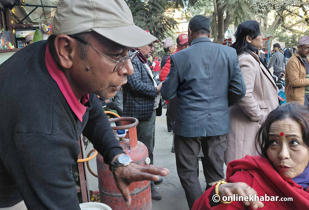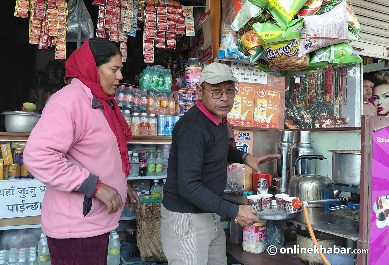 बिहानैदेखि भीडभाड बढेको यो पसलमा उनीहरूलाई आज बोल्ने फुर्सद छैन । ’आज भ्याइनभ्याइ छ । बोल्ने फुर्सद नै छैन,’ खड्काले भने ।