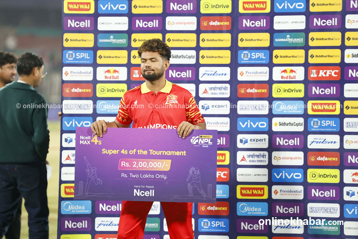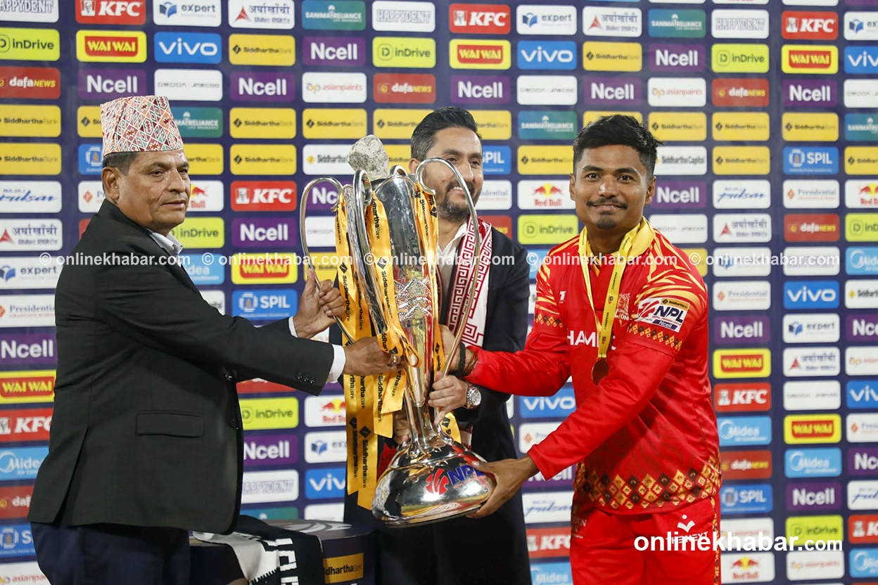 २७ मंसिर, काठमाडौं । नेपाल प्रिमियर लिग (एनपीएल) सिजन–२ को उपाधि लुम्बिनी लायन्सले जितेको छ । शनिबार भएको फाइनलमा सुदूरपश्चिमलाई हराउँदै लुम्बिनीले उपाधि जितेको हो ।