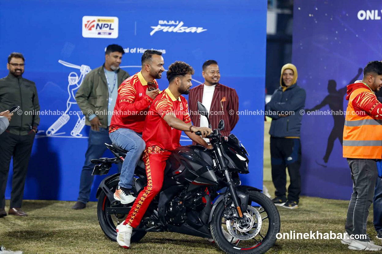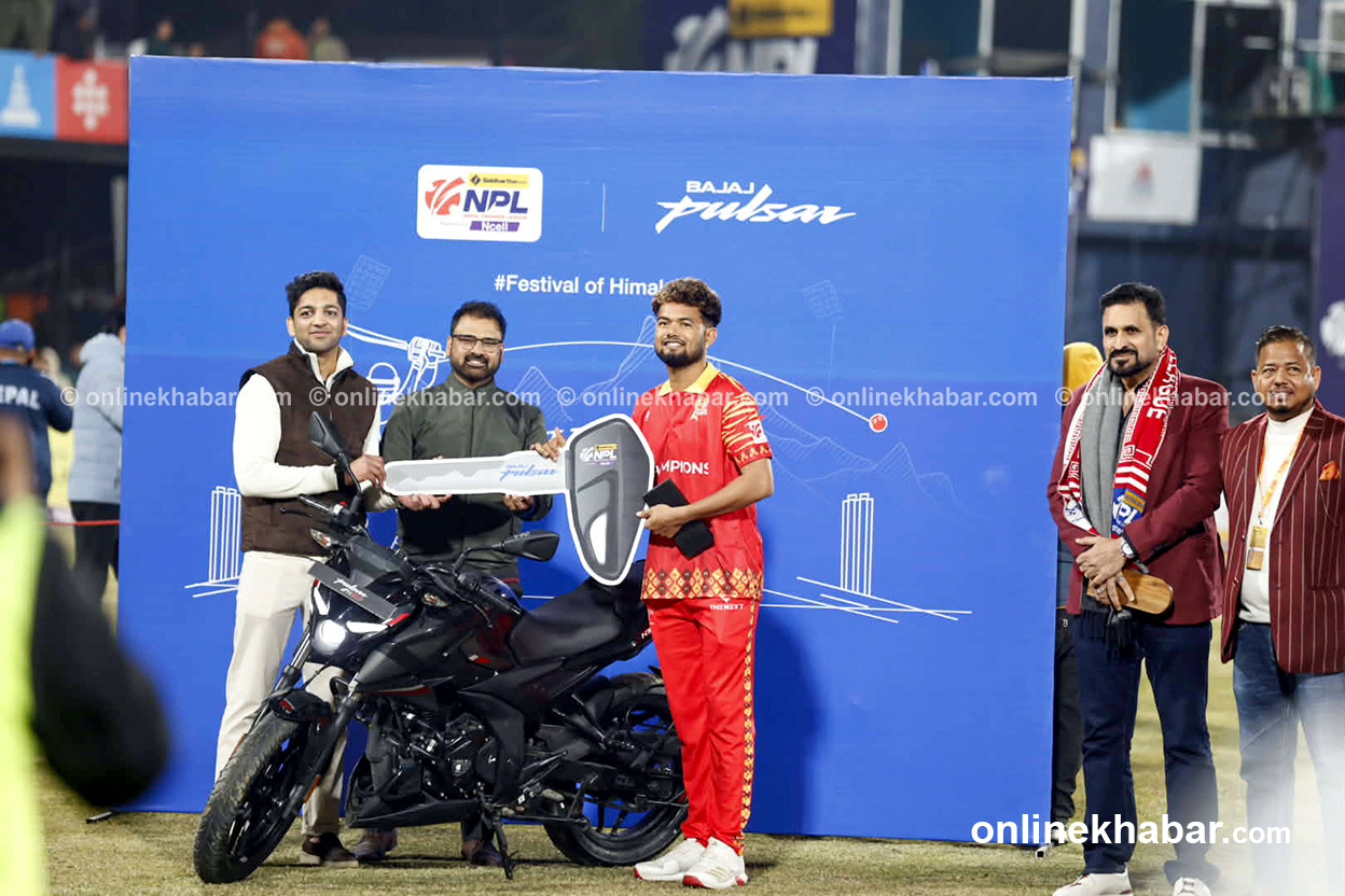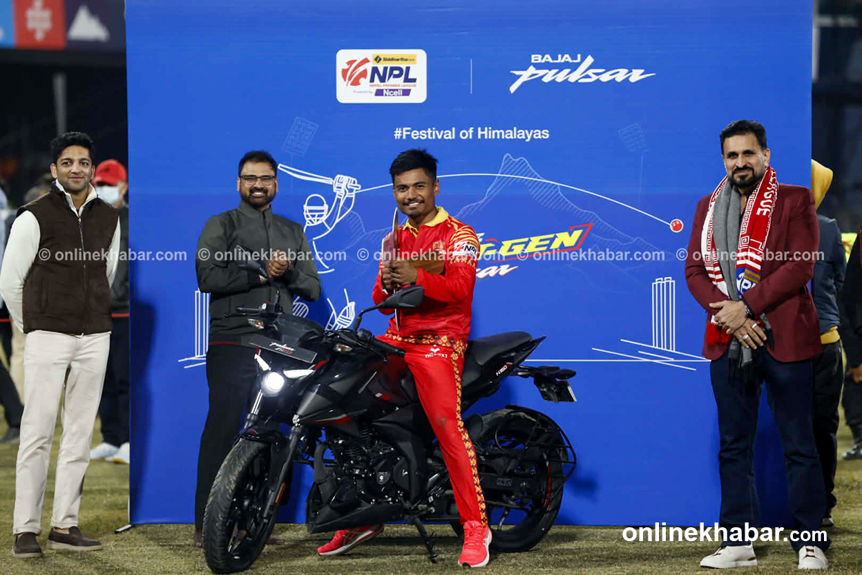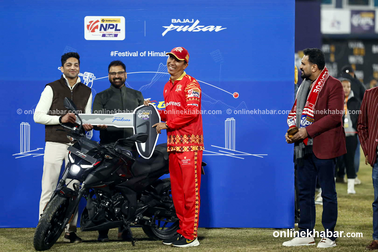 प्रतियोगिताको सर्वोत्कृष्ट बलर विराटगरका सन्दीप लामिछाने । उनले पनि पल्सर बाइक प्राप्त गरे । प्रतियोगिताको उत्कृष्ट ब्याटर पनि रोहित पौडेल घोषित भएका छन् । उनले पनि पल्सर बाइक प्राप्त गरेका छन् ।