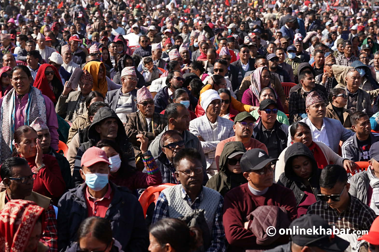 ‘खेतबारीको काम छोडेर आएका हौँ । टोलका सबै जाने भने त्यसैले आएको हो,’ बिहान ५ बजे सिराहाबाट भक्तपुर आइपुगेका ७५ वर्षीय सर्जुक दासले भने । तर उनीहरू किन आए भन्नेबारे उनीहरूलाई नै थाहा थिएन । सभामा ठूलो जनसंख्या देखाउनका लागि टोलका नेताको आग्रहमा ७७ जिल्लाबाटै मानिसहरू भक्तपुरमा आएका थिए । कति पार्टीमा आवद्ध थिए । कति चाहिँ थिएनन् ।