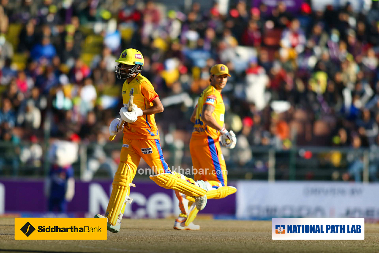 सुदुरपश्चिम रोयल्सले आजको फाइनल खेलमा टस जितेर पहिले ब्याटिङ गर्ने निर्णय गरेको थियो । पिच हेर्दा रन बन्ने खालको नै देखिएको थियो । धेरैको अनुमान थियो सुदूरले राम्रो योगफल बनाउँछ अनि खेल अन्तिम ओभरसम्मै गएर रोमाञ्चक हुनेछ भनेर, तर त्यस्तो भइदिएन ।