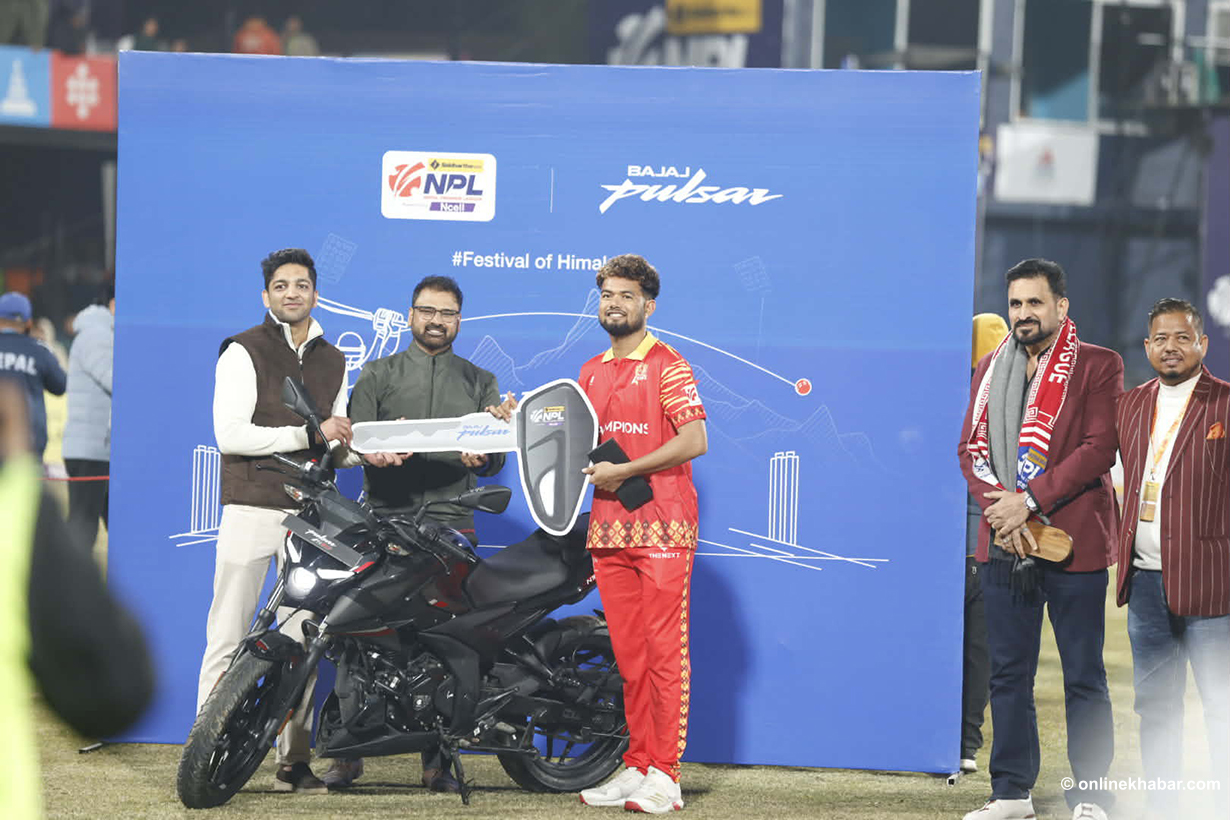 उनले आफ्नो मिस्ट्री स्पीनमार्फत विपक्षीको टप अर्डर कोल्याप्स गर्ने काम गरेका थिए । १० खेलमा १७ विकेट लिएका उनी प्रतियोगिताको इमर्जिङ खेलाडी बन्दै पल्सर बाइक उपाधि जिते ।