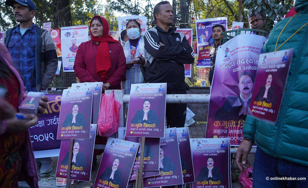 मतदानस्थल भृकुटीमण्डपमा बिहान देखि नै नेता/कार्यकर्ताहरू उपस्थित छन् । उम्मेदवारका पक्षधर नेता/कार्यकर्ताहरू प्रचारमा रहेका छन् ।