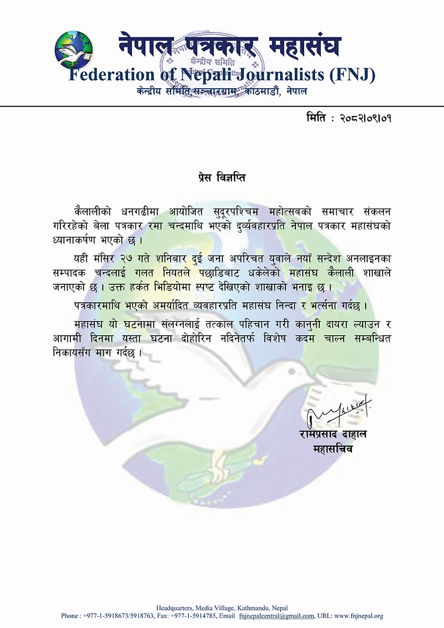 हेर्नुहोस् पत्रकार महासंघको विज्ञप्ति :