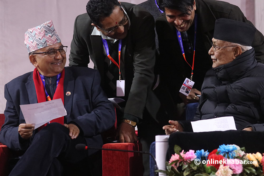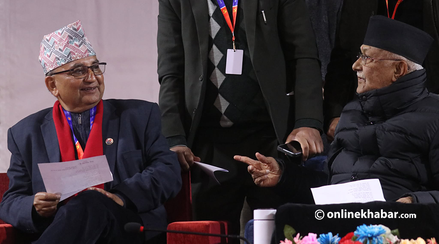 १ पुस, काठमाडौं । नेकपा एमालेको एघारौं महाधिवेशनमा नयाँ नेतृत्व चयनका लागि हुने मतदानअघि अध्यक्षका प्रत्यासीद्वय केपी शर्मा ओली र ईश्वर पोखरेल एकैसाथ देखिएका छन् ।
