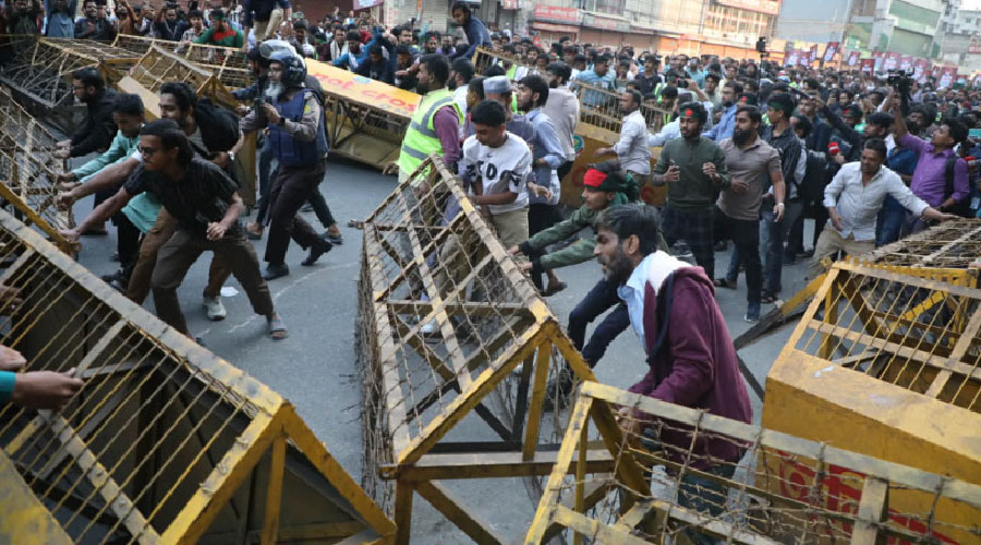 ढाकाको गुलशनस्थित भारतीय उच्चायोगतर्फ अघि बढेको प्रदर्शनलाई प्रहरीले ब्यारिकेड लगाएर रोकेको बंगलादेशी समाचार संस्था द डेलीस्टारले जनाएको छ । सो क्रममा ब्यारिकेड पल्टाएर प्रदर्शनकारी अघि बढ्न खोज्दा प्रहरीसँग झडप समेत भएको छ ।
