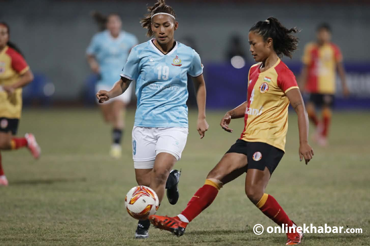 दशरथ रंगशालामा भएको खेलको निर्धारित ९० मिनेटको खेलमा दुवै टोलीले गोलका अवसर सिर्जना गरेपनि फिनिसिङ भने हुन सकेन । इस्ट बंगालको अट्याकलाई एपीएफकी गोलकिपर अन्जना राना मगरले उत्कृष्ट बचाउ गरेकी थिइन् ।