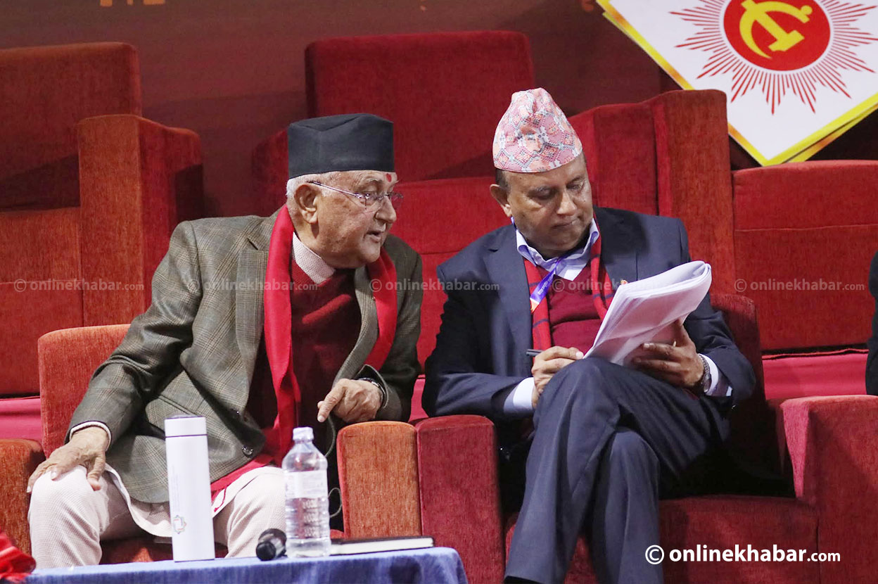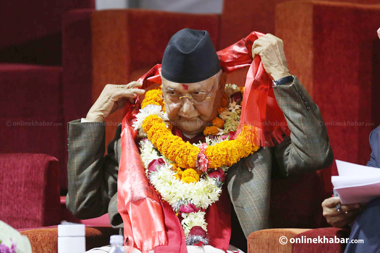 अध्यक्षका प्रत्यासी ईश्वर पोखरेललाई भारी मतान्तरले पराजित गर्दै तेस्रो पटक पार्टी अध्यक्षमा निर्वाचित भएका ओलीले पार्टी विधान अनुसार पद तथा गोपनीयताको शपथ लिन लागेका हुन् ।