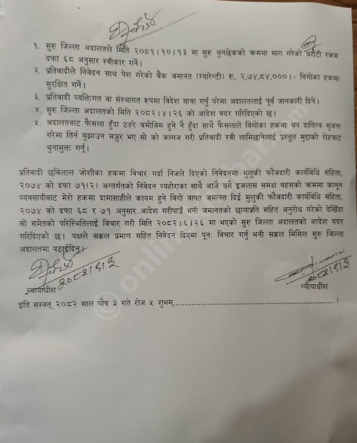 त्यो वापत उच्च अदालतले थप एक करोड रुपैयाँ धरौटी राख्नसमेत आदेश दिएको छ ।