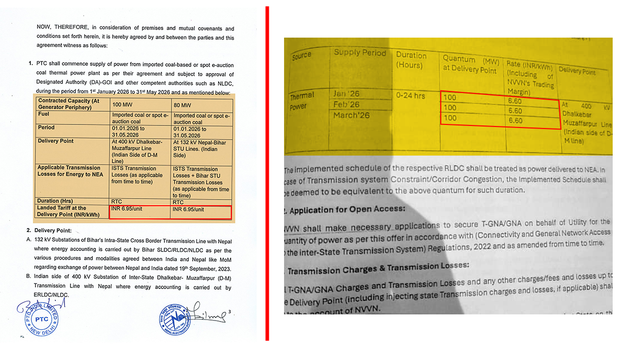 पीटीसीसँग प्राधिकरणले १ जनवरीदेखि ३१ मेसम्म १ सय ५१ दिन १८० मेगावाट विद्युत् आयात गर्ने सम्झौता १३ अक्टोबरमा गरेको थियो । त्यो भनेको कुल ६५ करोड २३ लाख २० हजार युनिट हुन्छ । यसअघि पीटीसीसँगै भारतीय २१ पैसा बढीका दरले किन्नुपर्दा दरकै कारण त्यो बिजुलीमा २१ करोड ९१ लाख ७९ हजार ५ सय २० नेपाली रुपैयाँ प्राधिकरणलाई घाटा लाग्ने हिसाब गरिएको थियो ।
